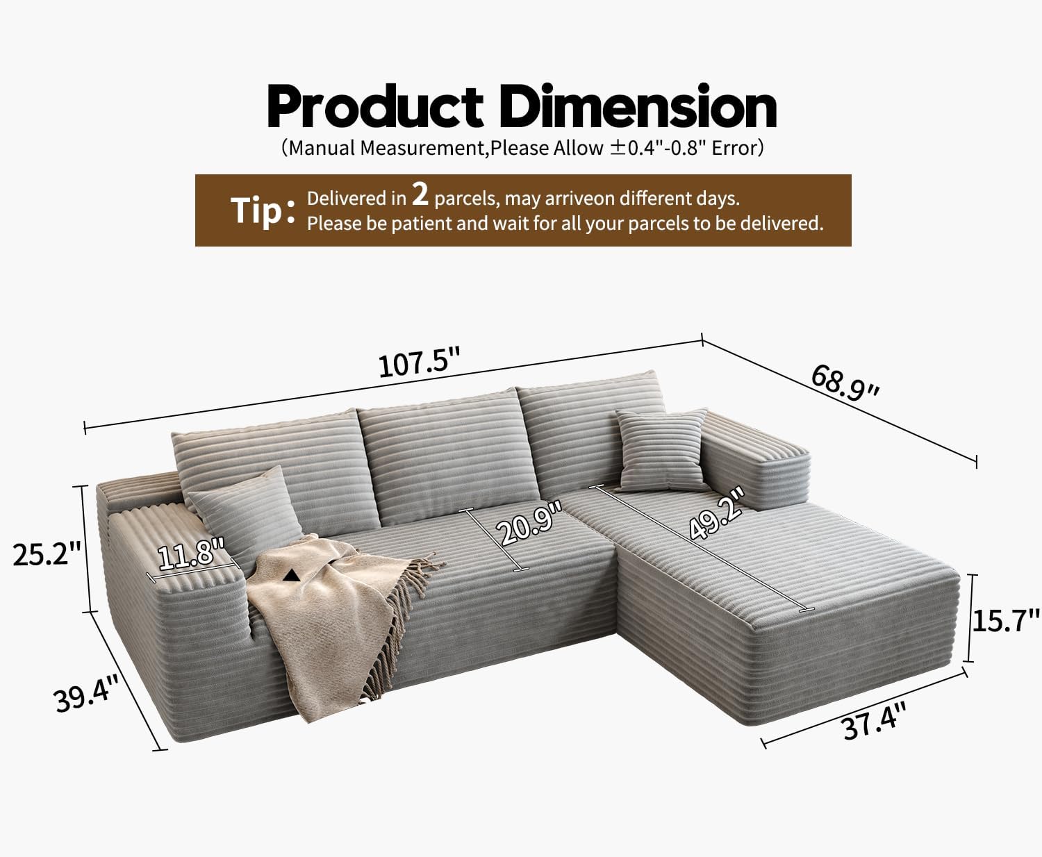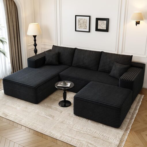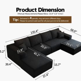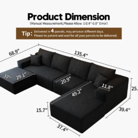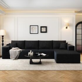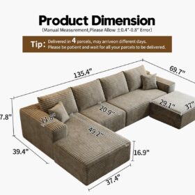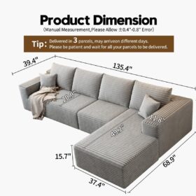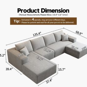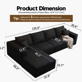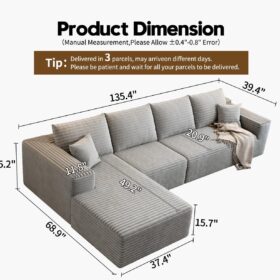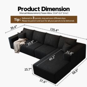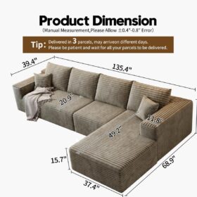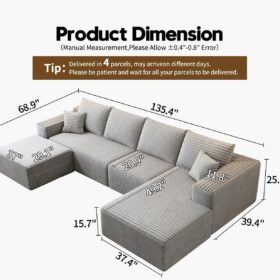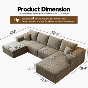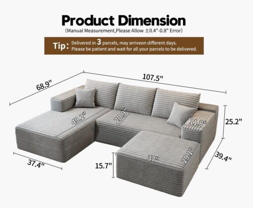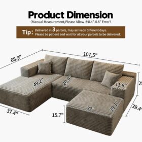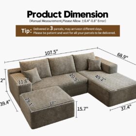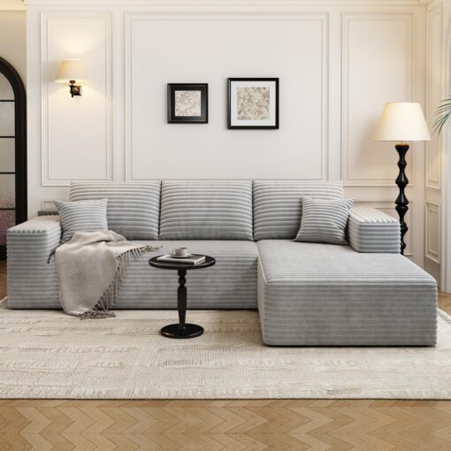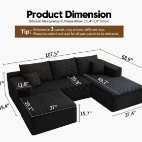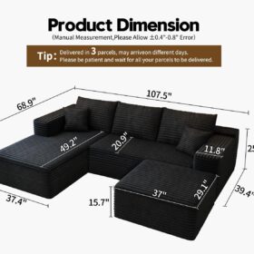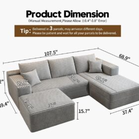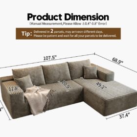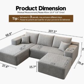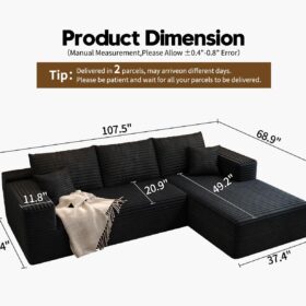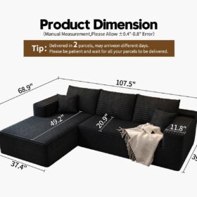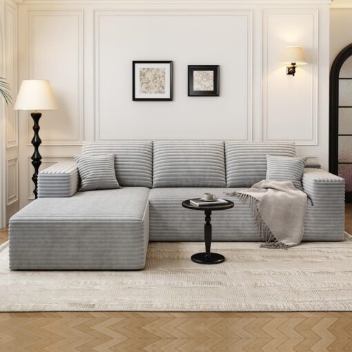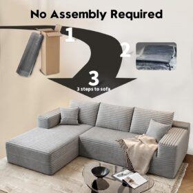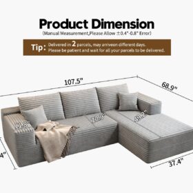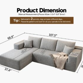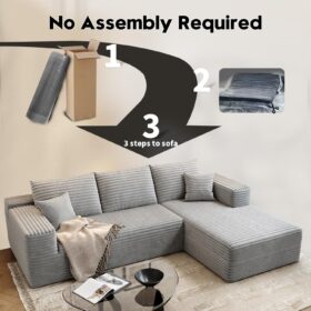 - Modular Sectional Sofa:This L-shaped sectional sofa featuring a sleek design, clean lines, and high-quality plush corduroy Fabric,This minimalist L-shaped sectional set maximizes space when placed against a wall,this corner sofa effortlessly adds a timeless and sophisticated touch to your home. Designed to be the focal point of attention, it’s an ideal choice for elevating the ambiance of living rooms, apartments, and bedrooms.
