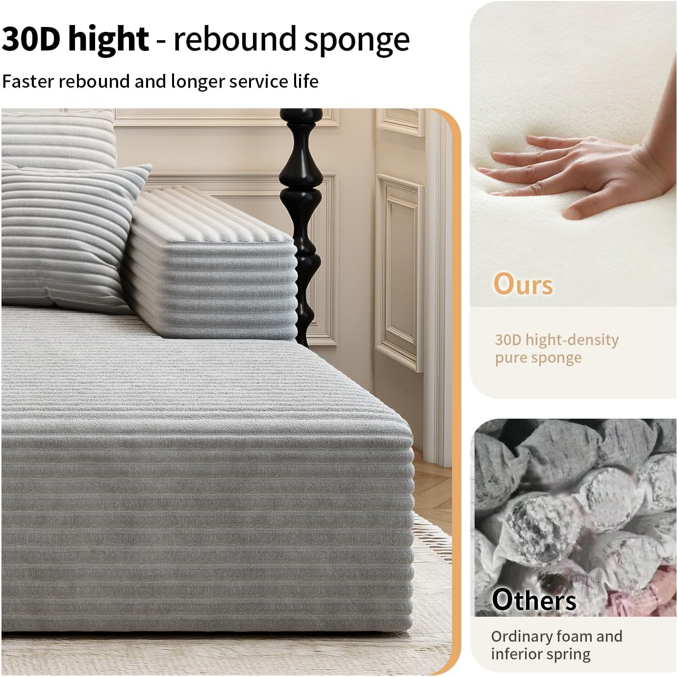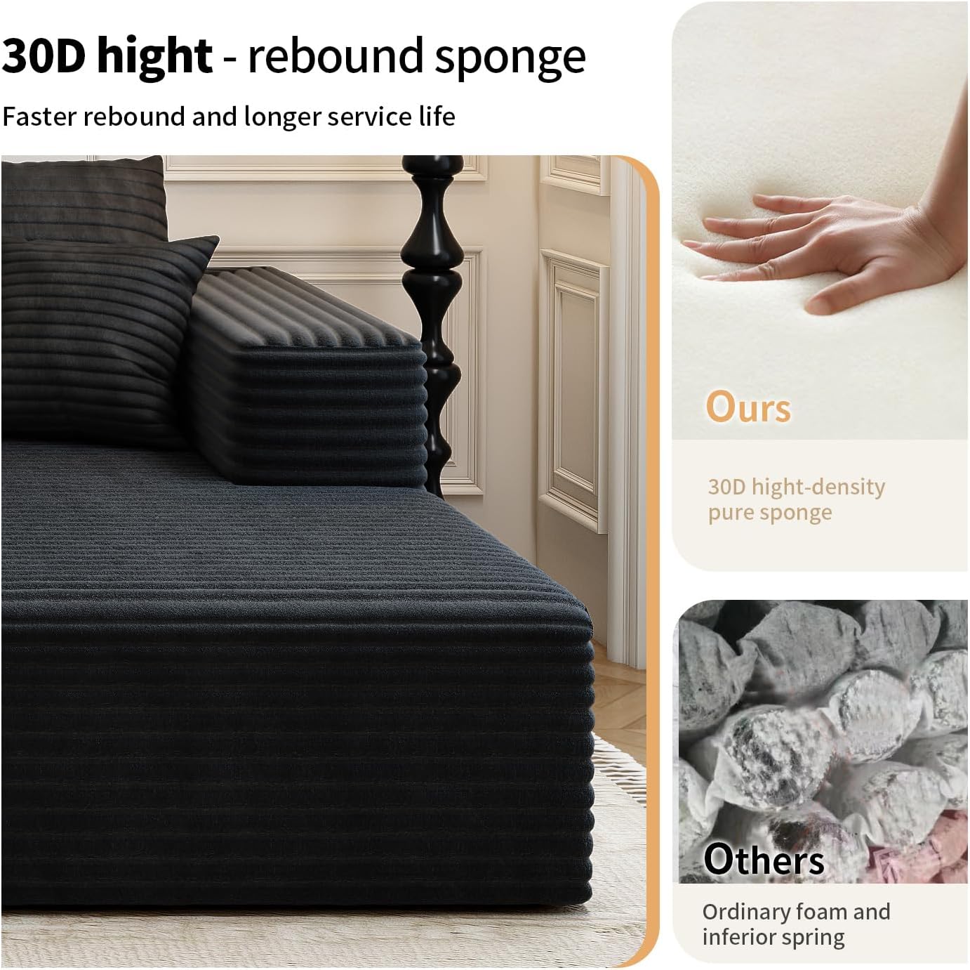 - No Assembly Required:Say goodbye to furniture assembly nightmares! our minimalist sofas require no tedious assembly to experience instant comfort. Simply unwrap and relax, no tools required. In just a few moments, your comfy cloud couch is ready to be put to use and reach a state of total luxury within 72 hours.