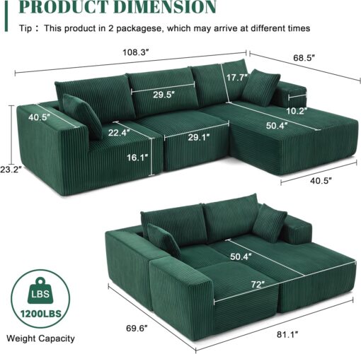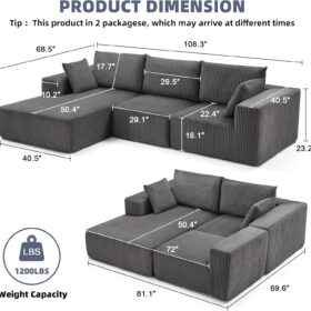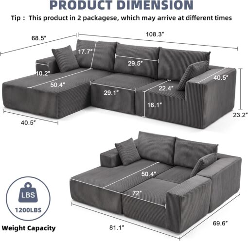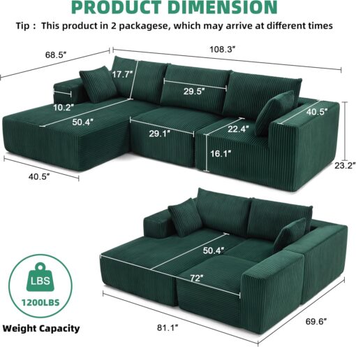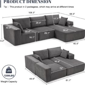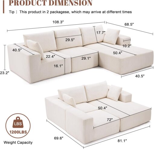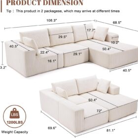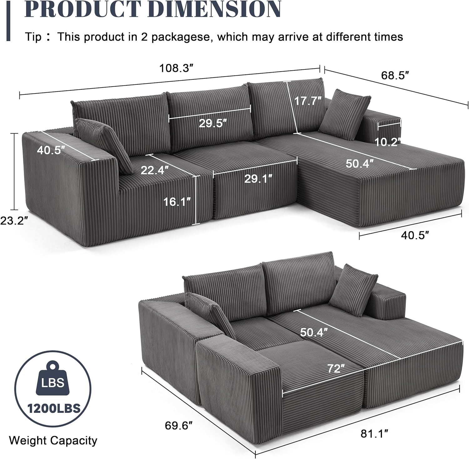108 Modular Sectional Sofa Cloud Sectional Couch Modern Modular L-Shape Sofa Couch