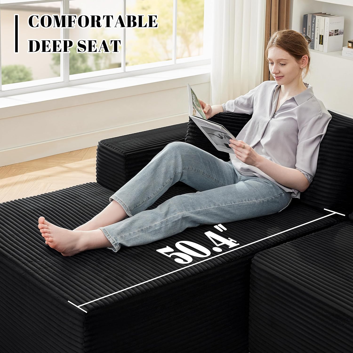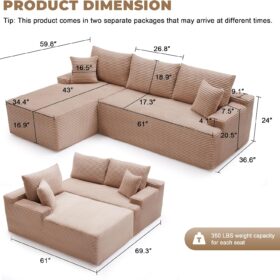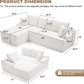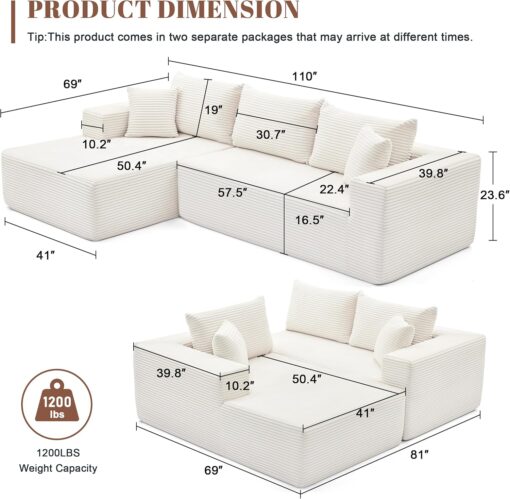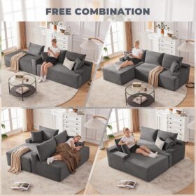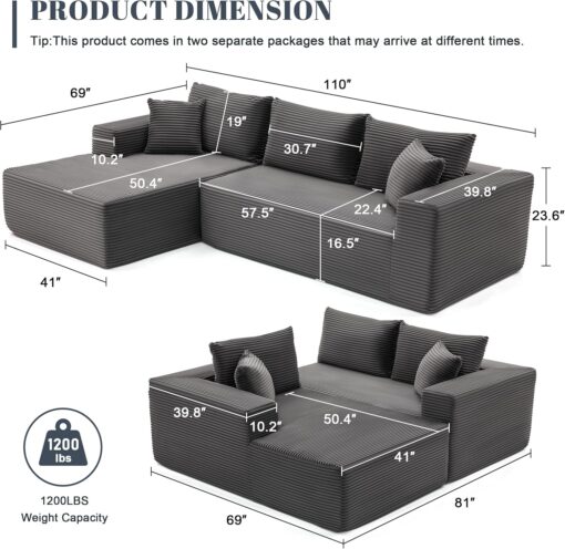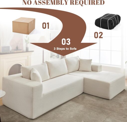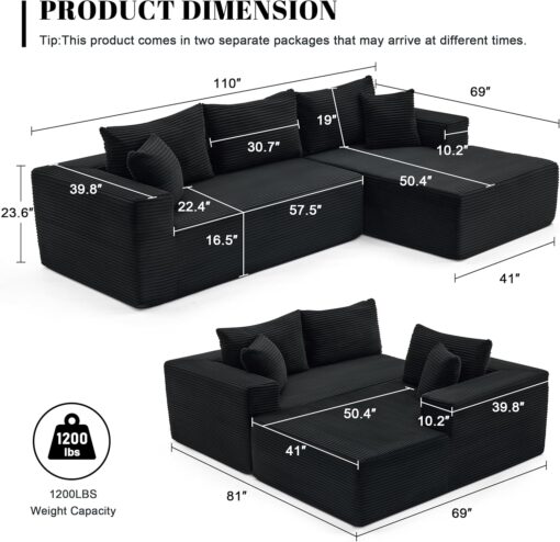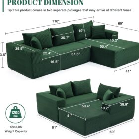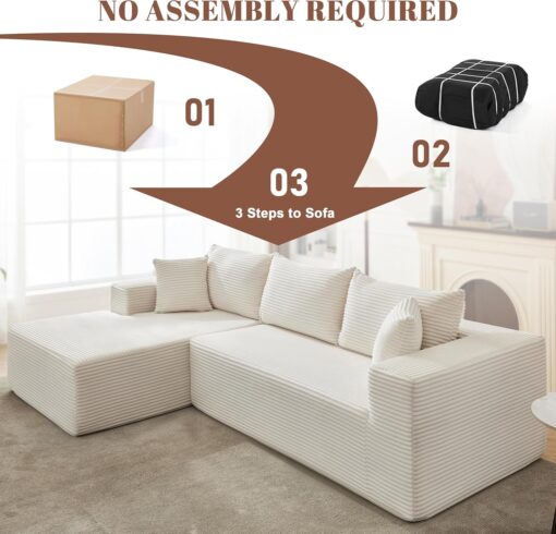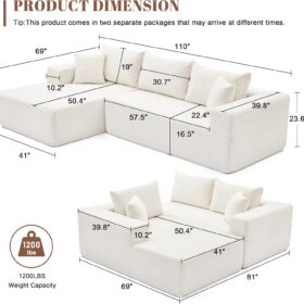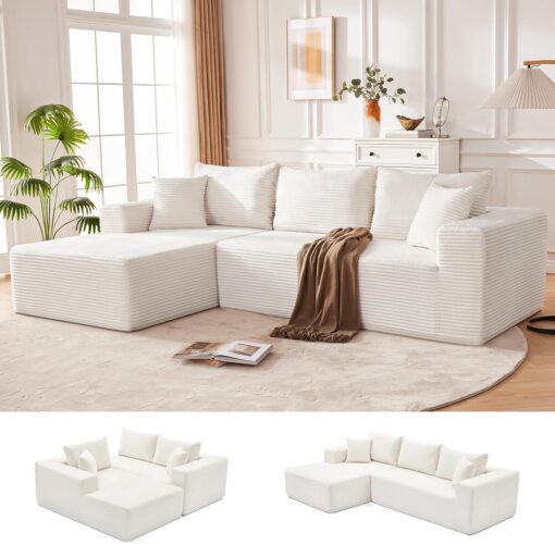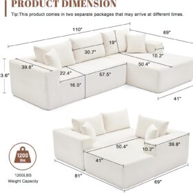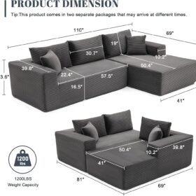 110 Cloud Sectional Couch, Boneless Sofa for Living Room Modular Sectional Sofa with Deep Seat
