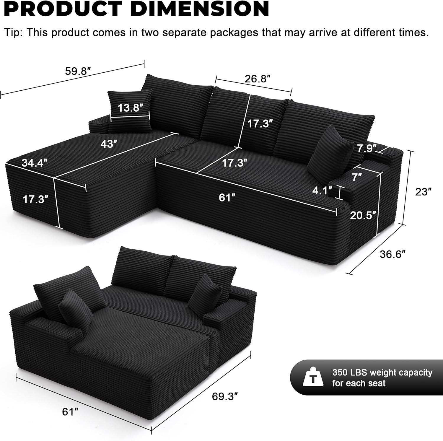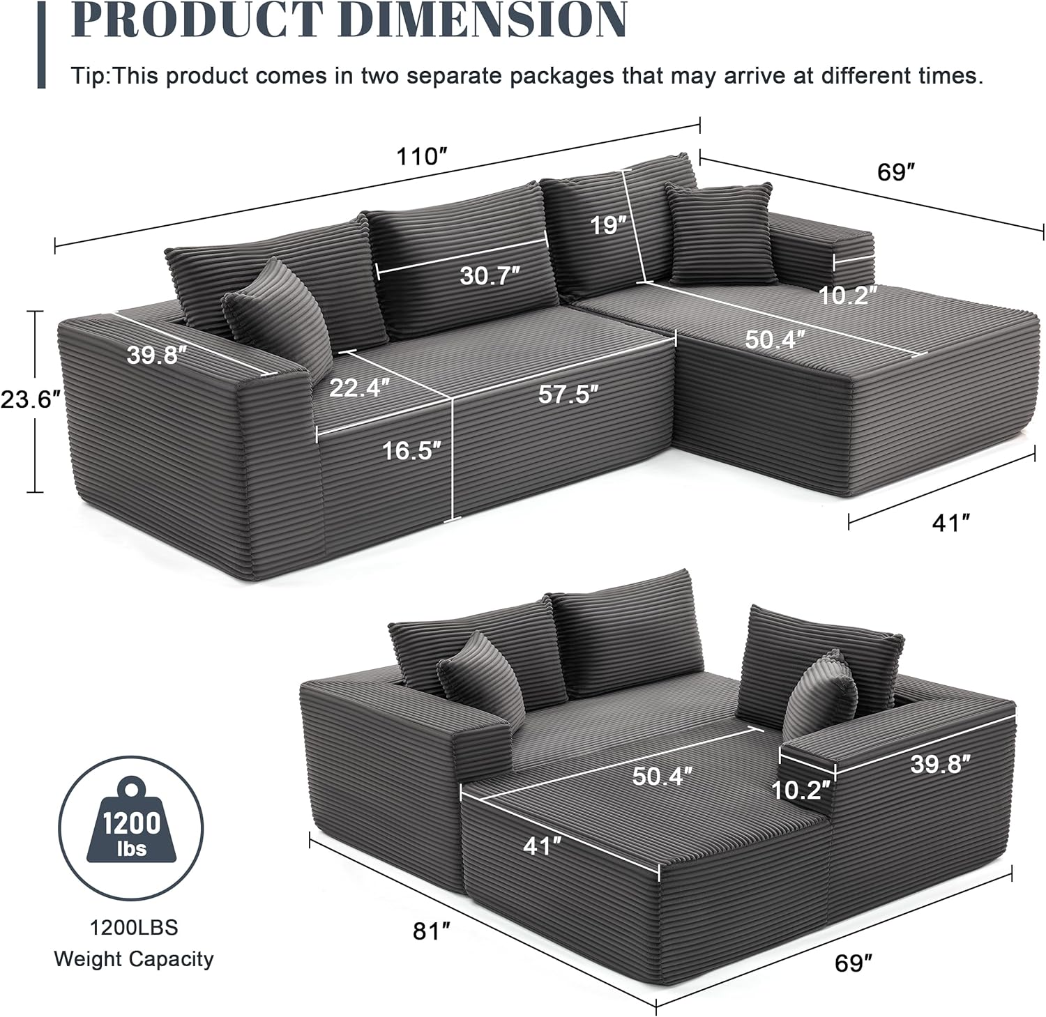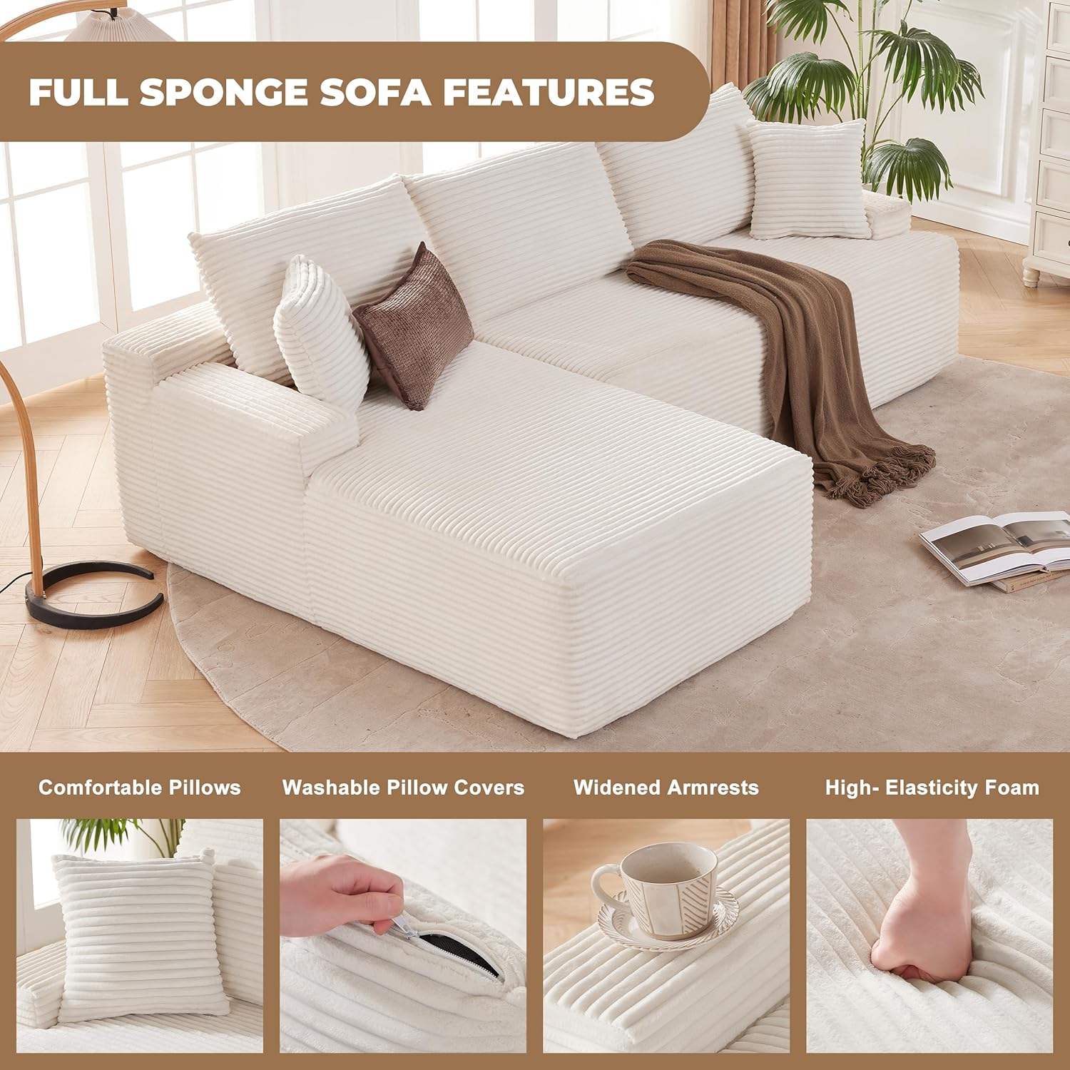 110 Cloud Sectional Couch, Boneless Sofa for Living Room Modular Sectional Sofa with Deep Seat