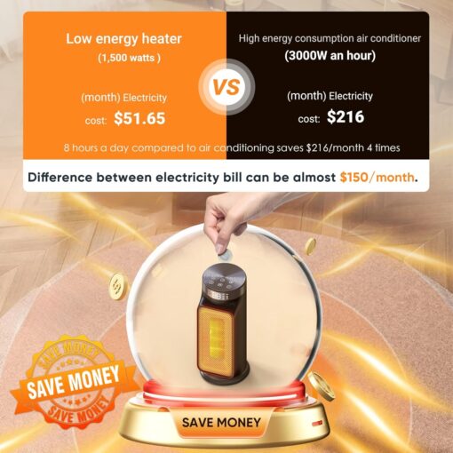 - 𝗘𝘅𝘁𝗲𝗻𝗱𝗲𝗱 𝗟𝗶𝗳𝗲𝘀𝗽𝗮𝗻: Our energy efficient space heater is engineered with superior quality materials and advanced technology which guarantees a longer lifespan. This ensures you enjoy consistent, reliable, and cost-effective heating comfort for extended periods without the inconvenience and expense of frequent replacements, making our heater a sustainable and worthwhile investment.