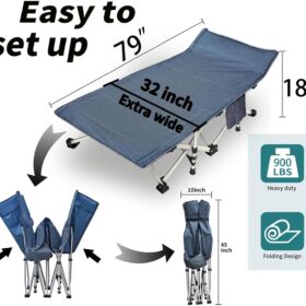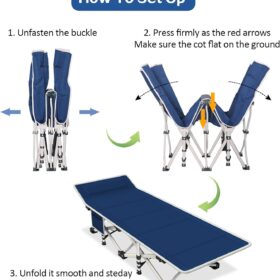 - No assembly required: This sleeping cot can be used without assembly. It only takes a few seconds to set up and fold, and it is convenient to store and save space. The sleeping cot can be put into a storage bag for easy carrying and storage. The storage size is 40*10*8 inches.