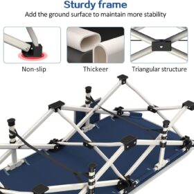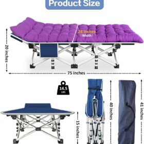 - Stable and comfortable: The size of this camping bed is 75 x 28 inches (L×W), only 14 pounds and can easily support 500 pounds, because the frame is made by 26 pcs steel pipes, which is strong and durable. This mat is filled with fiber cotton, which is soft and skin-friendly.