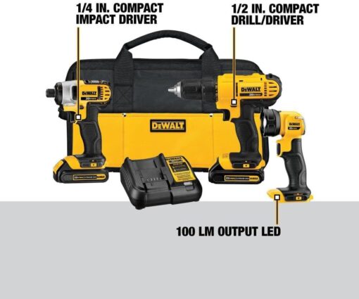 - DCD771: Compact, lightweight design of the cordless tools combo kit fits into tight areas