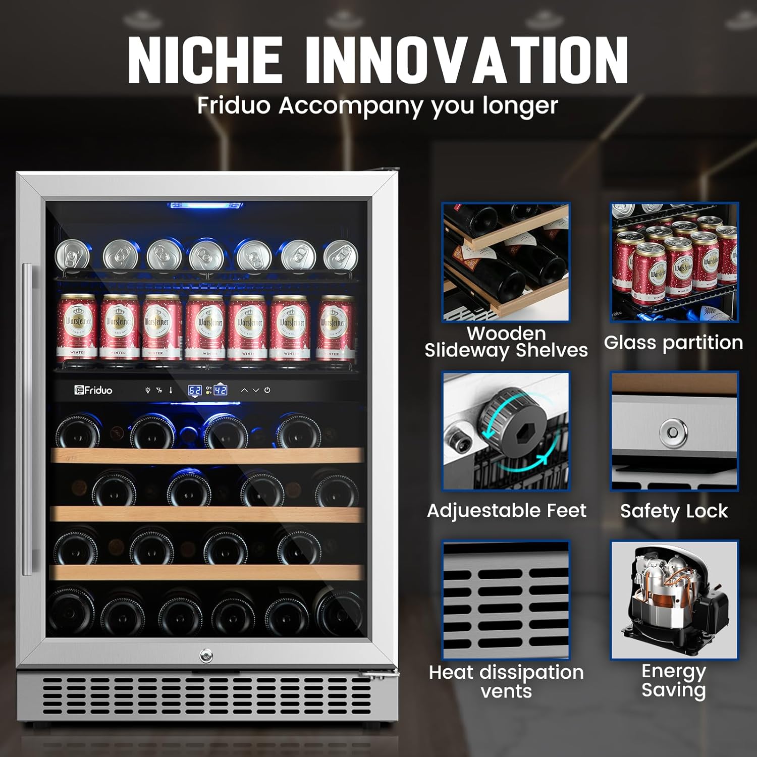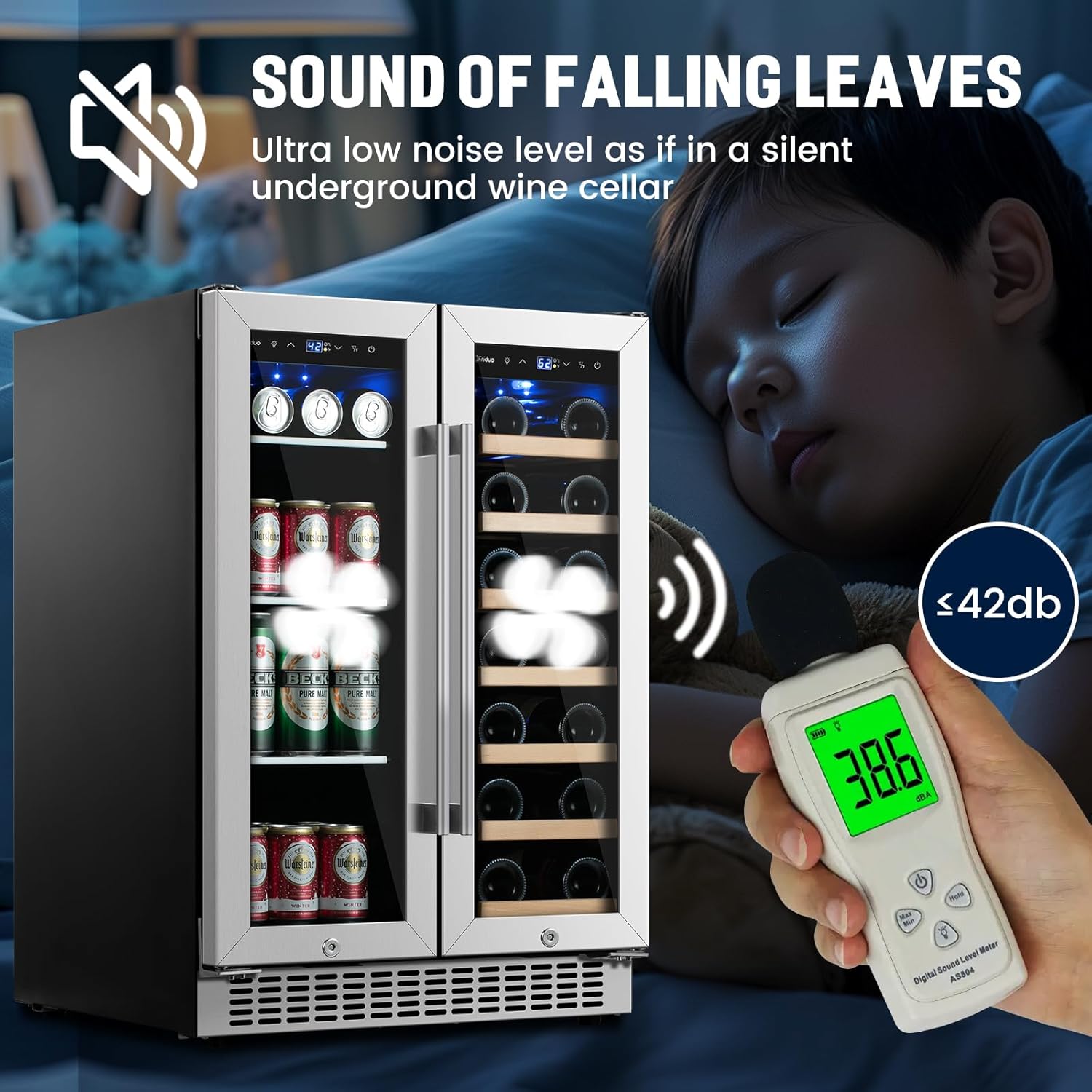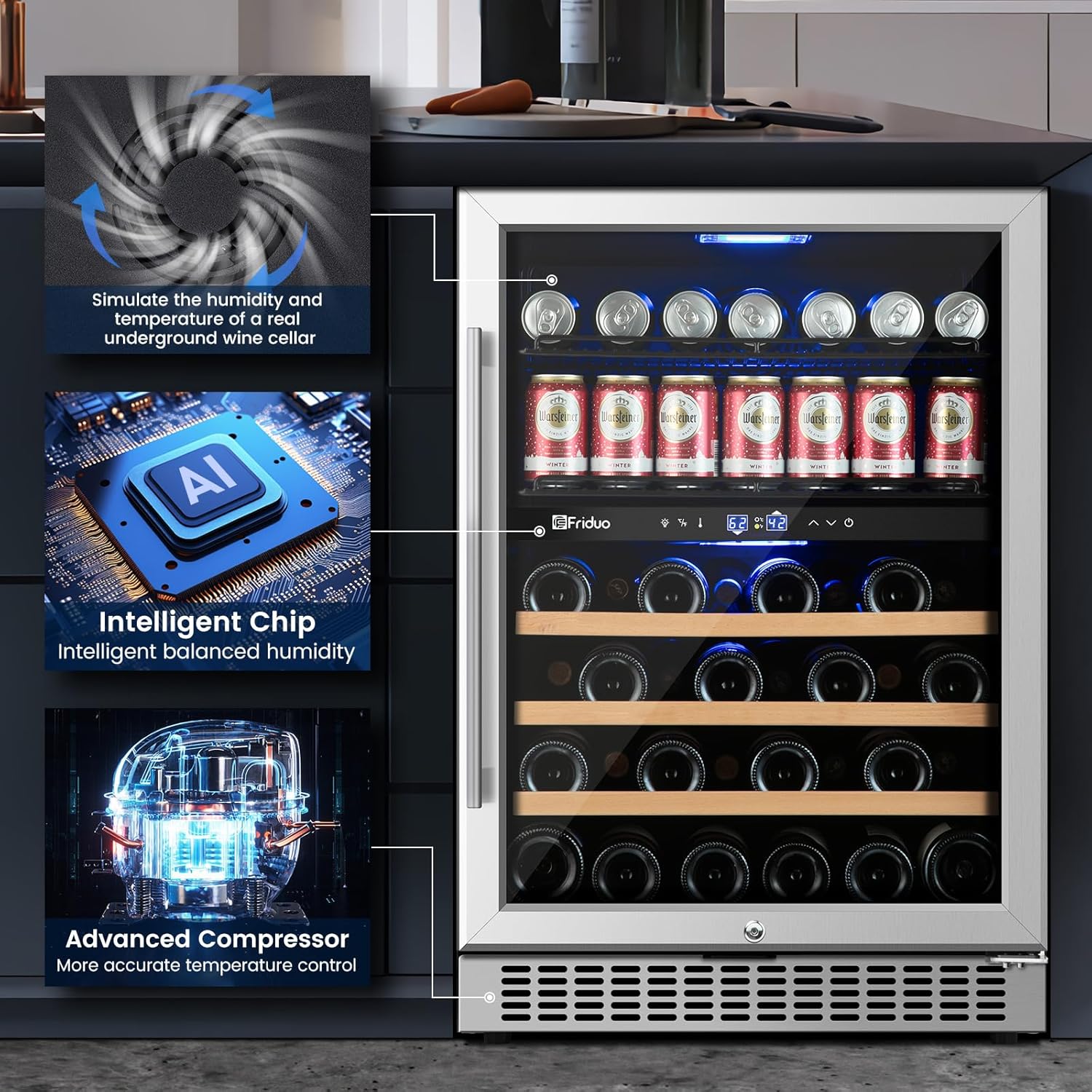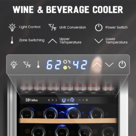 - 【Ultra-Quiet Beverage Fridge with Smart Digital Control�?Engineered for silent operation (below 42dB), this wine refrigerator integrates a responsive LED touch panel for precise temperature adjustments. Ideal for apartments, offices, or open kitchens, the beverage fridge combines whisper-quiet cooling with energy-efficient performance to preserve your collection undisturbed