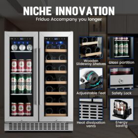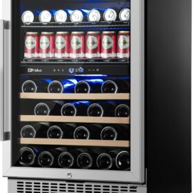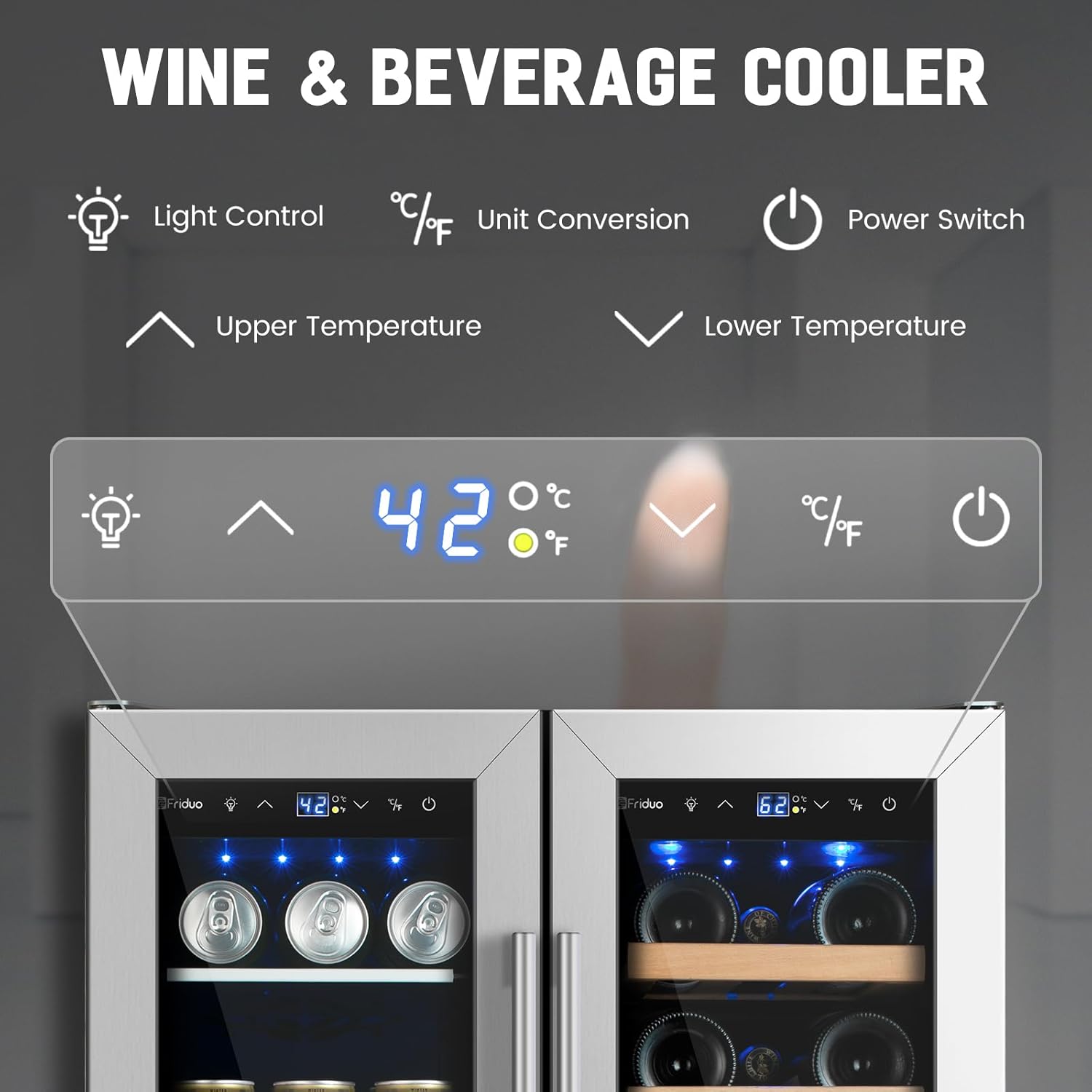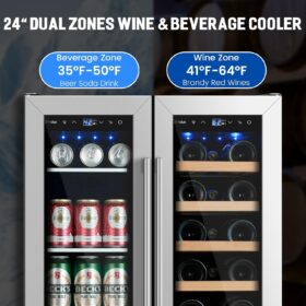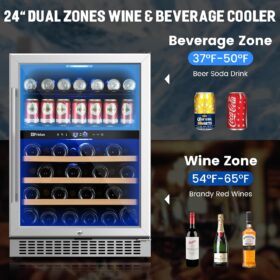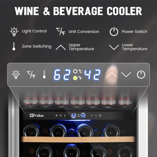- 【Dual Temperature Zone Beverage Refrigerator and Wine Fridge�?Beverage refrigerator has dual temperature zones, which can place craft soda and sparkling water in the upper temperature zone (37-50�? and wine in the lower temperature zone (54-65�?. It is perfect for wine lovers who want a dedicated wine refrigerator and beverage refrigerator in one, avoiding odor transfer between different compartments
