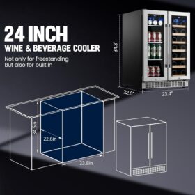 - 【Built-In/Free-Standing Beverage Cooler & Wine Storage�?Designed with sleek tempered glass and recessed handles, this versatile beverage refrigerator seamlessly transitions between built-in under-counter installation or freestanding use. Replace bulky traditional fridges with this space-saving wine cooler that complements modern kitchen aesthetics