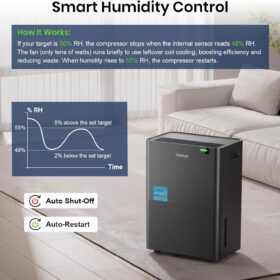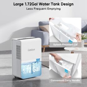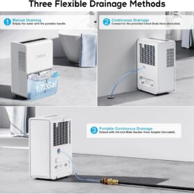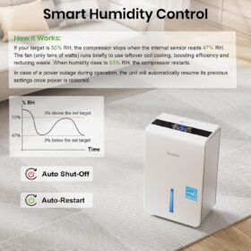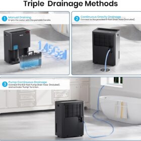 - [45dB Queit Compressor] The DryPrime dehumidifier operates at around 45dB and is relatively quiet, making it ideal for medium to large spaces like basements, garages, and living rooms. In these areas, it won’t disturb you while chatting with family, watching TV, or relaxing on the sofa