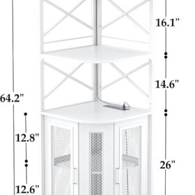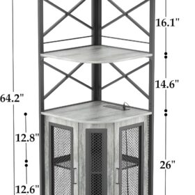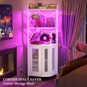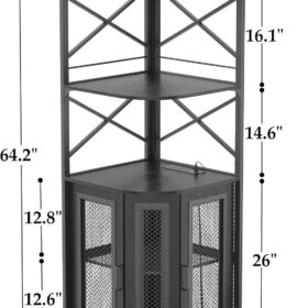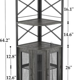 - 【Large Capacity Wine Cabinet】The corner cabinet combines wine racks, glass racks, and storage cabinets. the upper three open storage countertops is perfect for placing coffee machines, fruit trays, cup and favorite wines. The bottom of the corner cabinet is a double-layer storage cabinet with 2 mesh doors with magnets, which has plenty of room for your whiskeys, liquor, or other wine collections. You can also use it for storing home items.