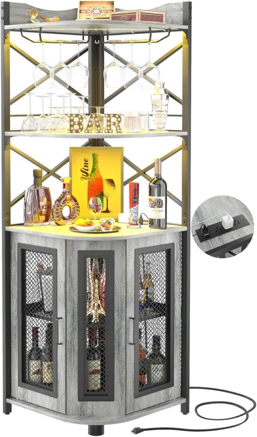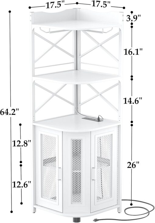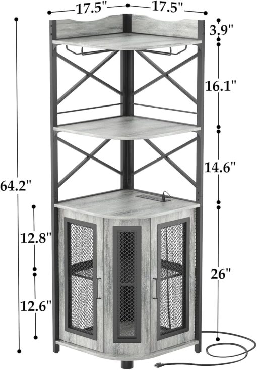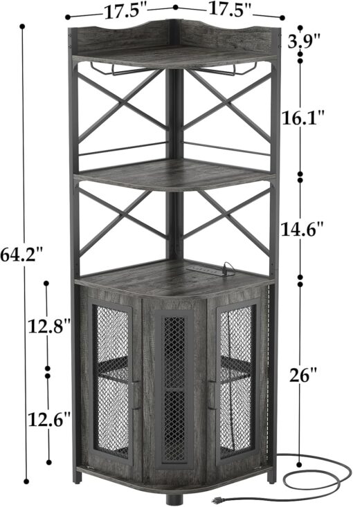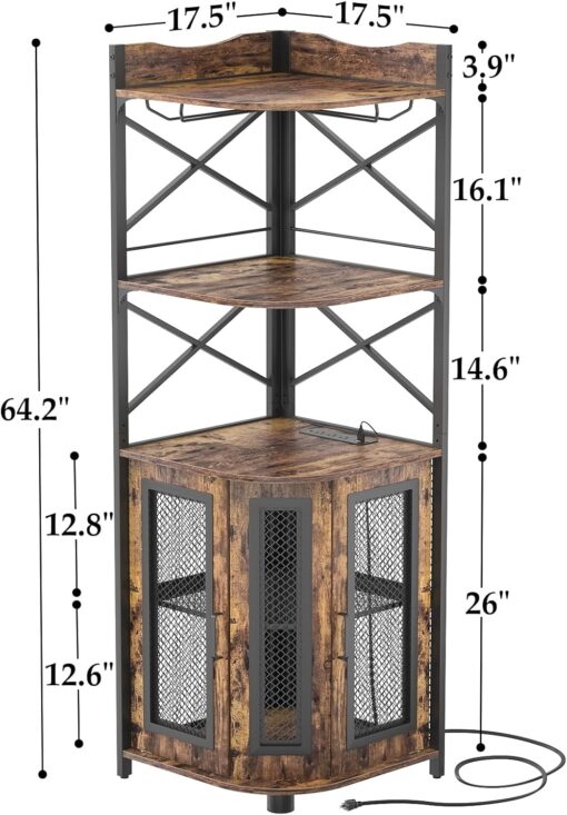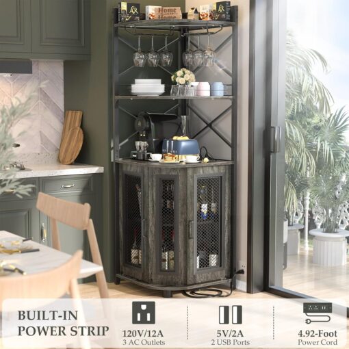 - 【Corner Wine Cabinet with Charging Station】Our bar cabinet is equipped with 3 Outlets& 2 USB ports, which help you easily charge your coffee maker, juicers, bar accessories, glowing lights decorations even your phone and other electrical appliances. don’t need to find additional power strips, All-in-one Design adds more convenience to your life. The length of the cable is 6.56FT long.