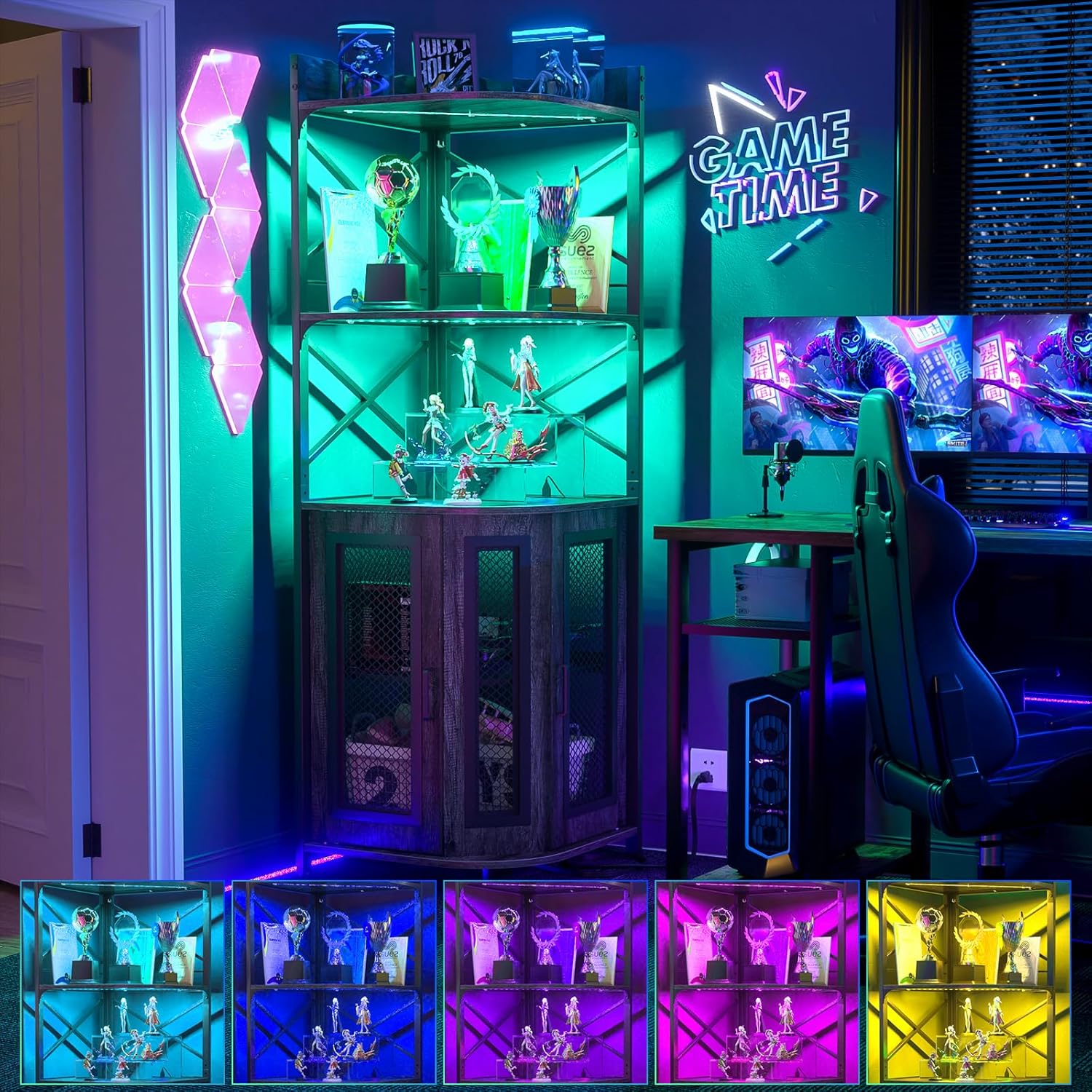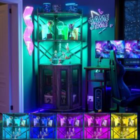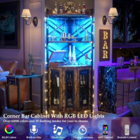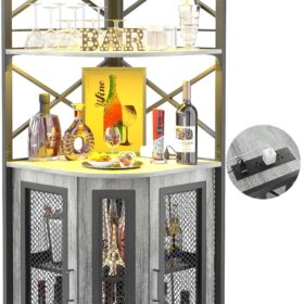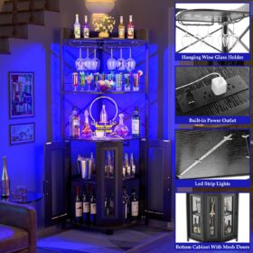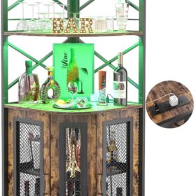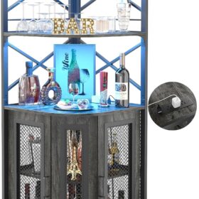 - 【Multifunctional Corner Bars】You can use this corner bar cabinet in several ways to maximize your living space. The vertical corner wine has a unique appearance and industrial design elements, perfectly matching most styles of home furniture, It offers ample storage and display space for kitchens, living rooms, lounge, and dining room.