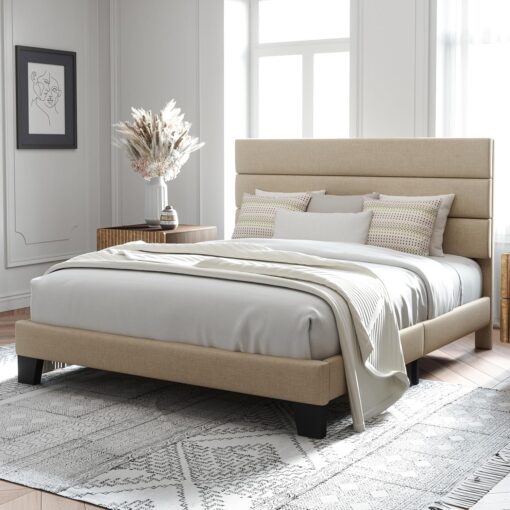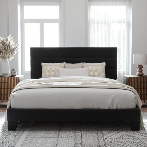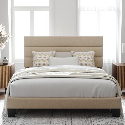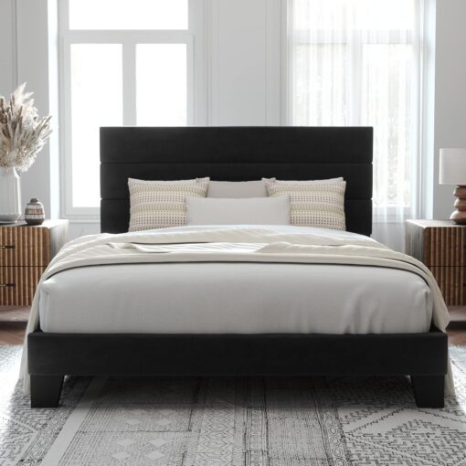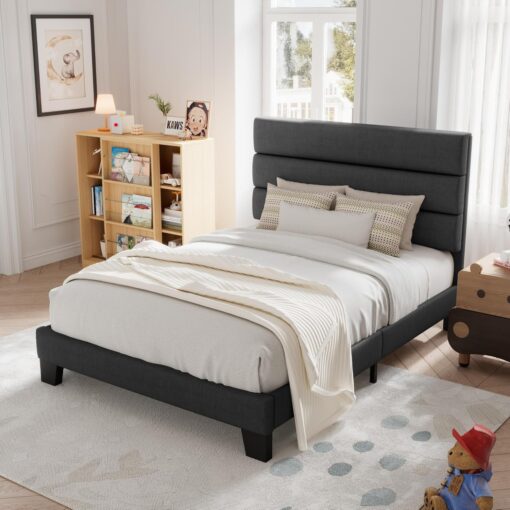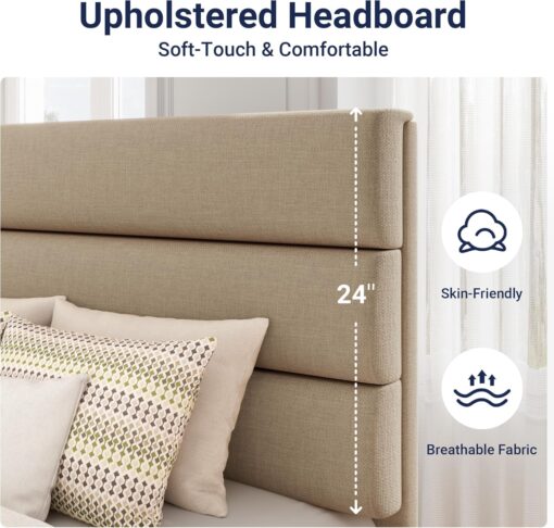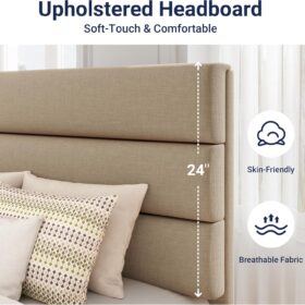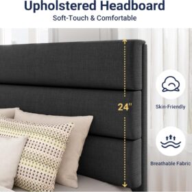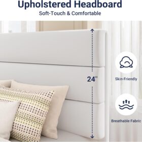 Yes, the headboard is upholstered and made of skin-friendly material.