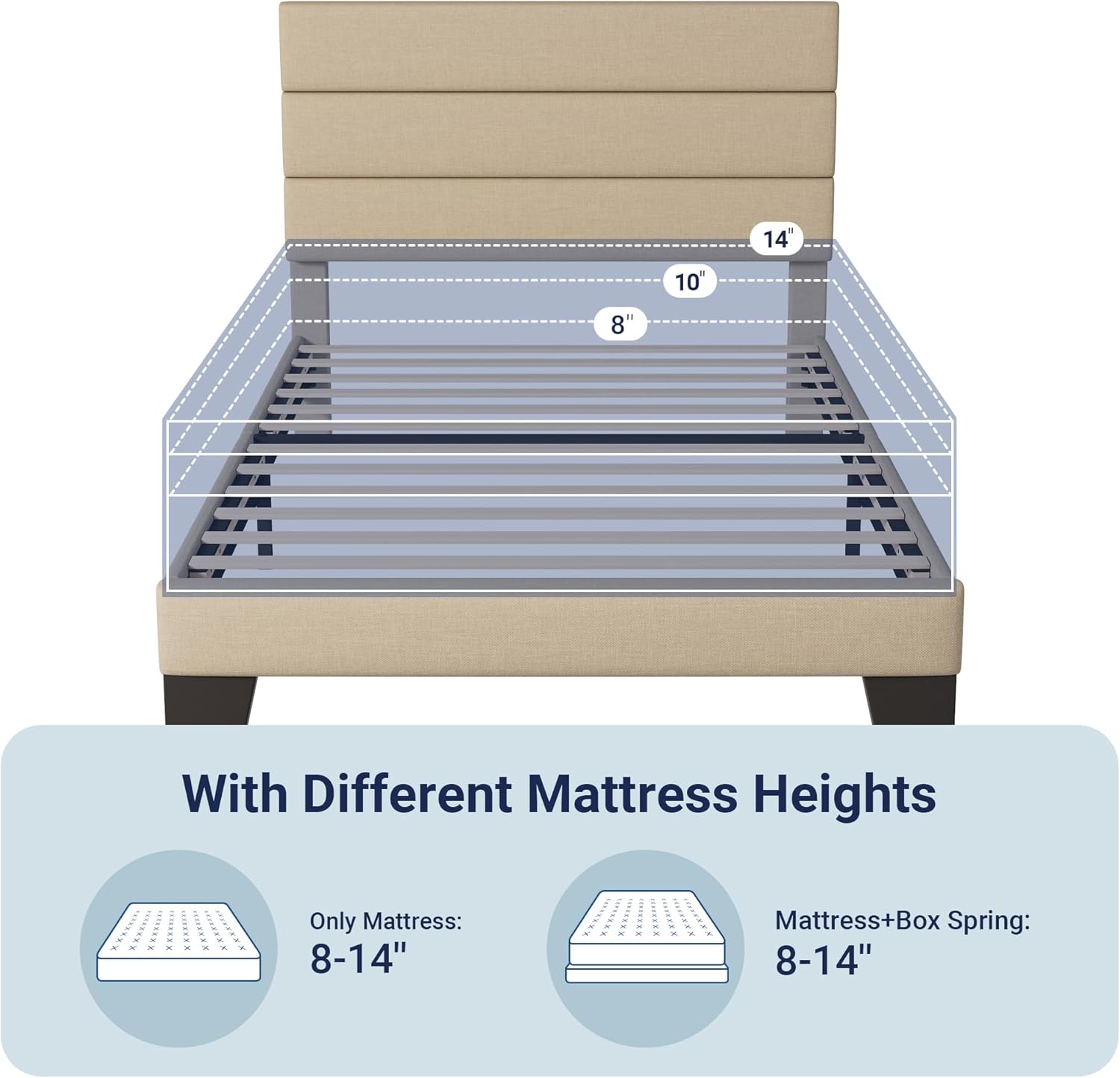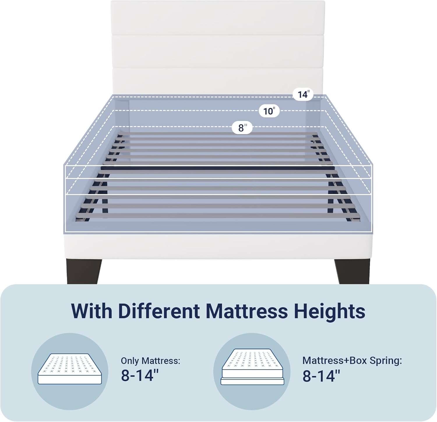 Perfectly adapted to 8-14 inches mattresses.