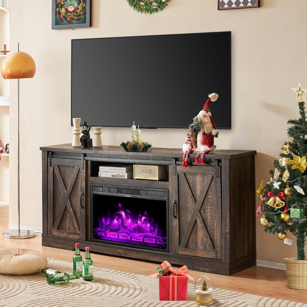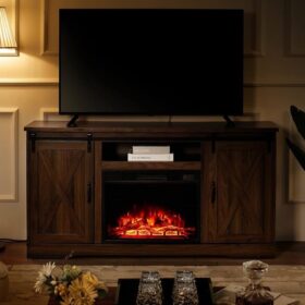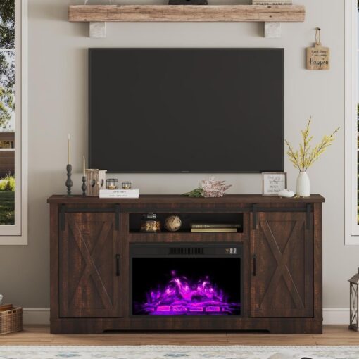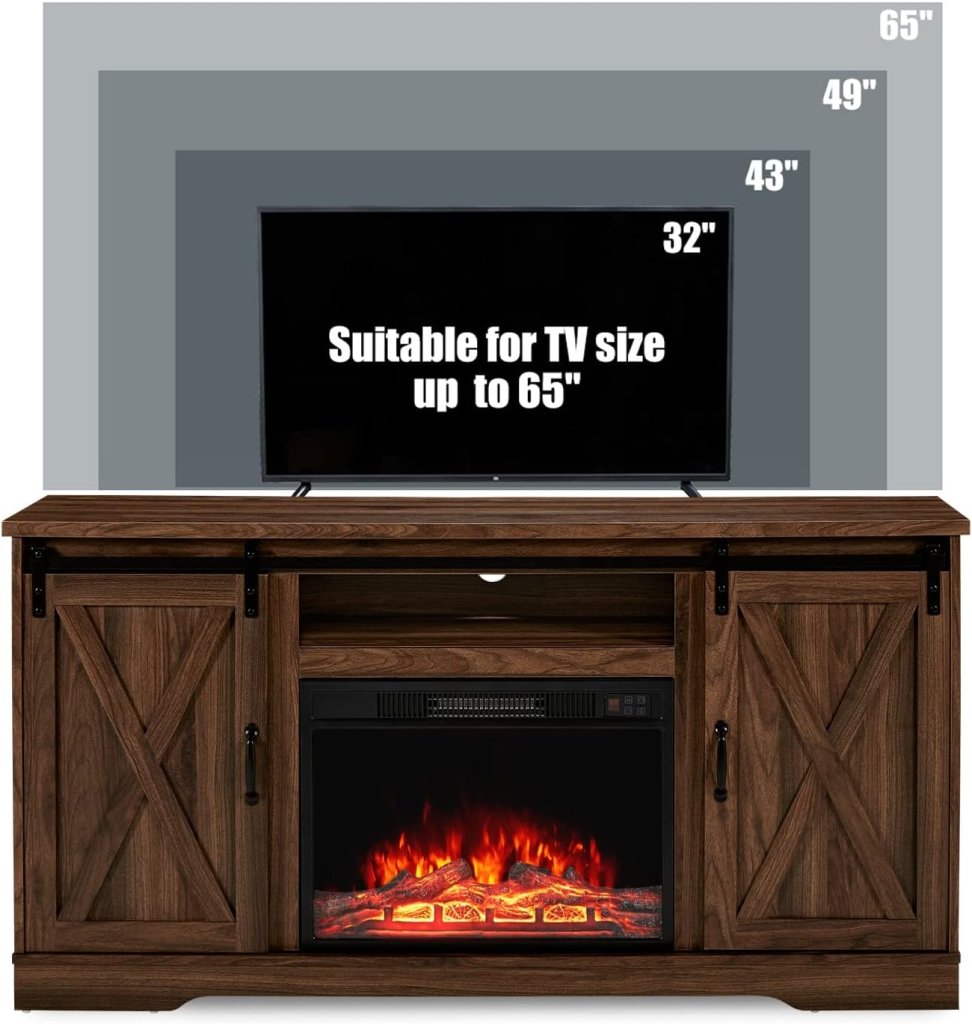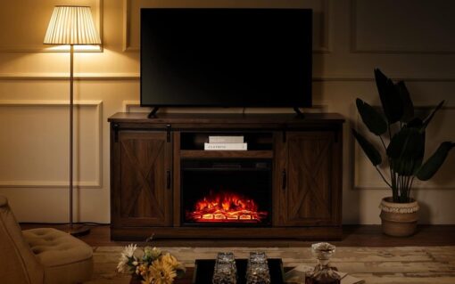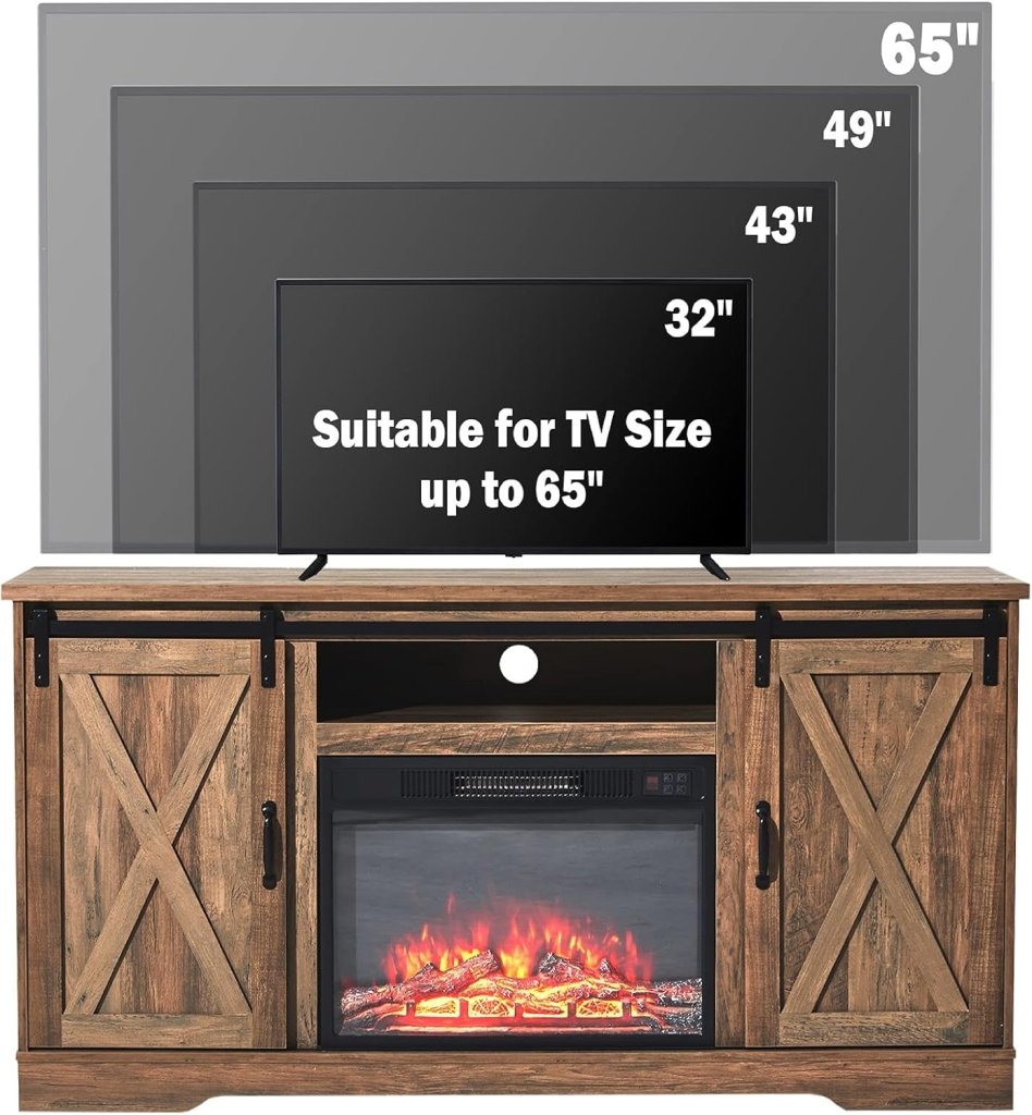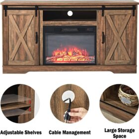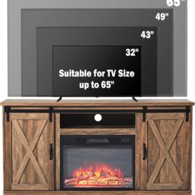 - 【Suitable for Various Occasions�?Rustic fireplace tv stand with natural color and complementary design fits seamlessly into various rooms like the living room, bedroom, or office.