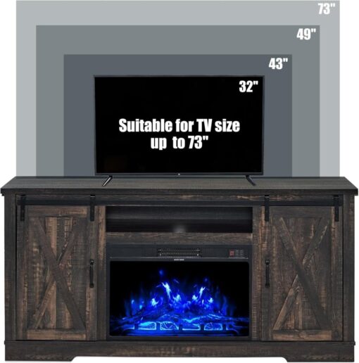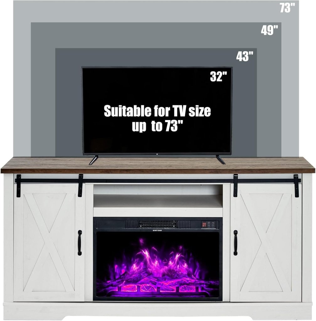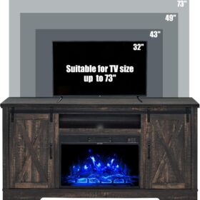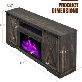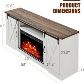 - 【Dimensions�?TV stand size: 63″W X 15.6″D X 30.7″H.Designed to accommodate TVs up to 73 inches. Fireplace size: 26″W X 4.5″D X 17.2H”.