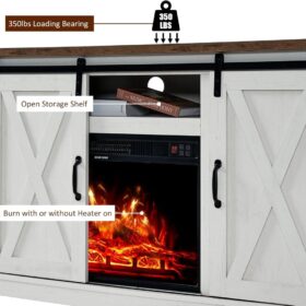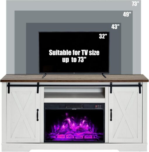 - 【TV Stands with Fireplaces】Upgrade your home with a spacious TV table and 26 inches fireplace, enhancing the overall ambiance of a blend of coziness and style while providing functionality.
