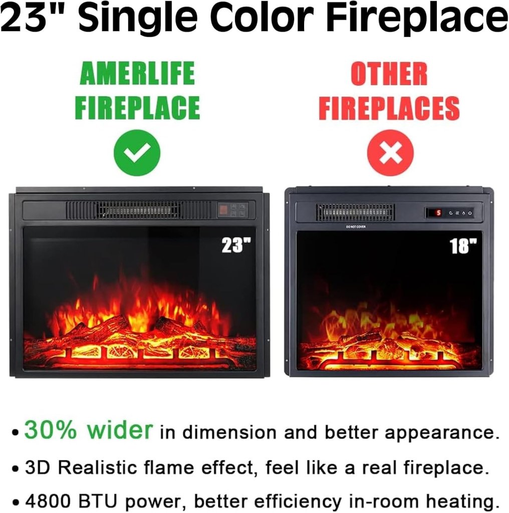- 【Realistic Flame Effect】Fireplace features LED technology with realistic logs and flame, creating a cozy ambiance and emitting no dangerous emissions or carbon monoxide.