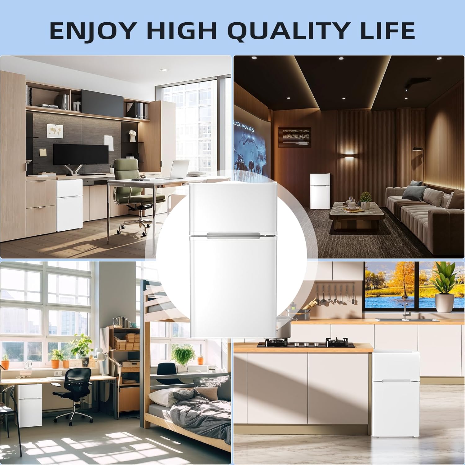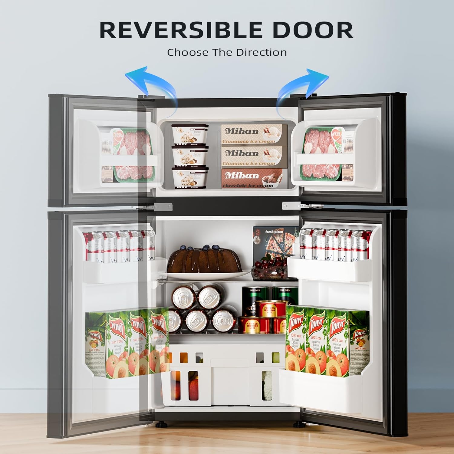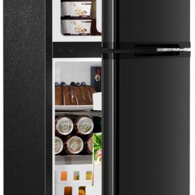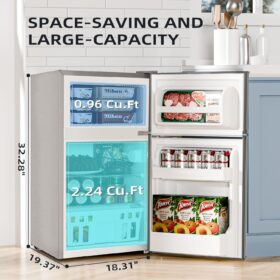 Antarctic Star 3.2 Cu.Ft,Mini Refrigerator with Freezer,Double Door Mini Fridge,Compact Refrigerator,Adjustable Thermostat,Mini Refrigerator for Bedroom/Office/Dorm/Kitchen(BLACK)