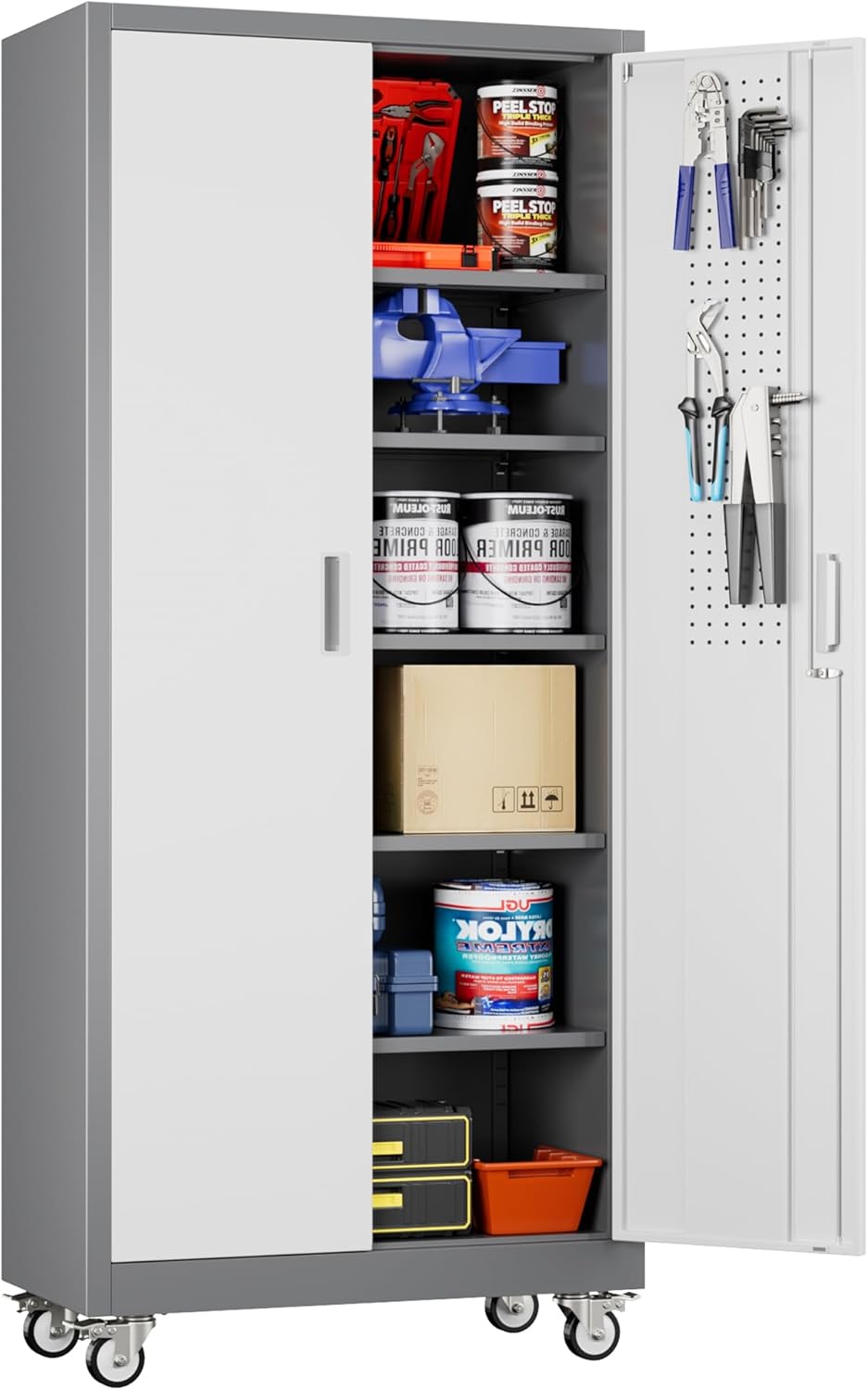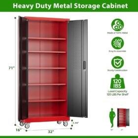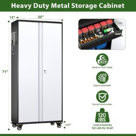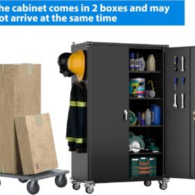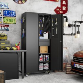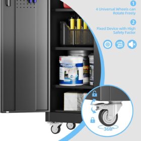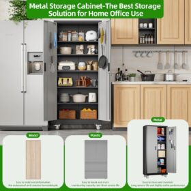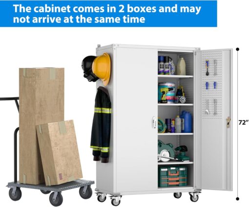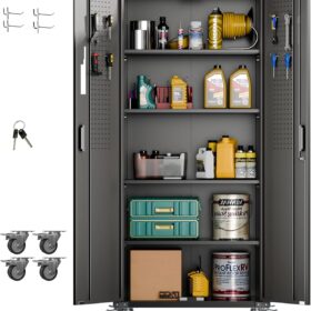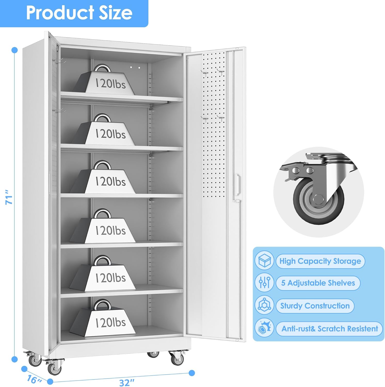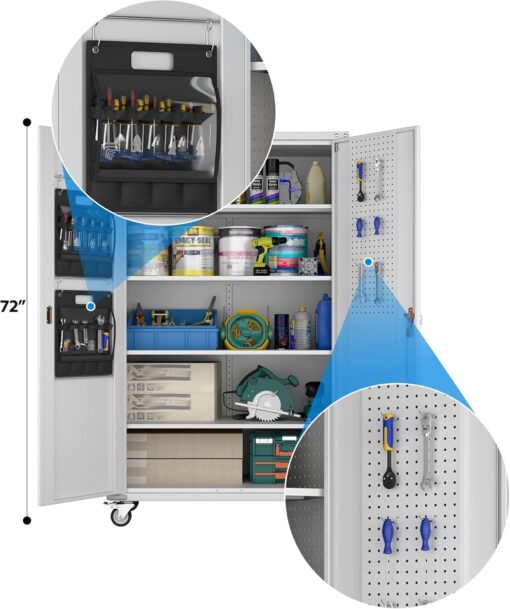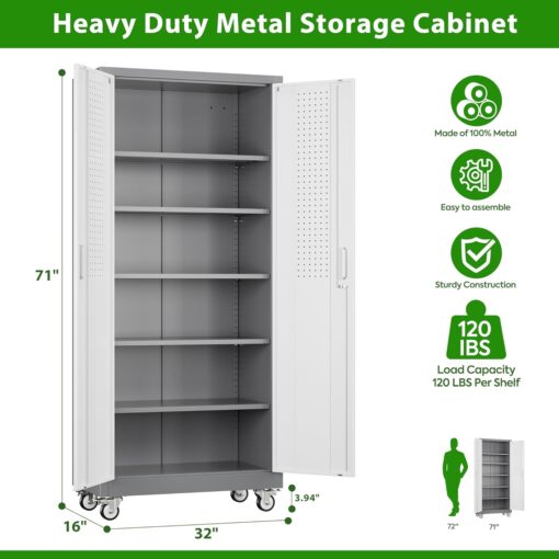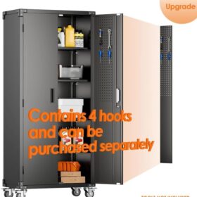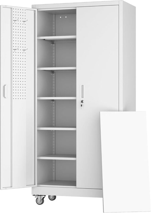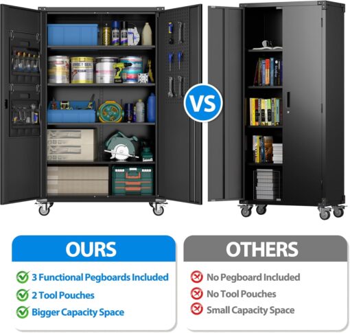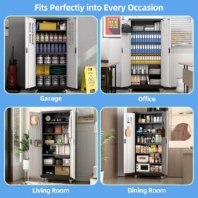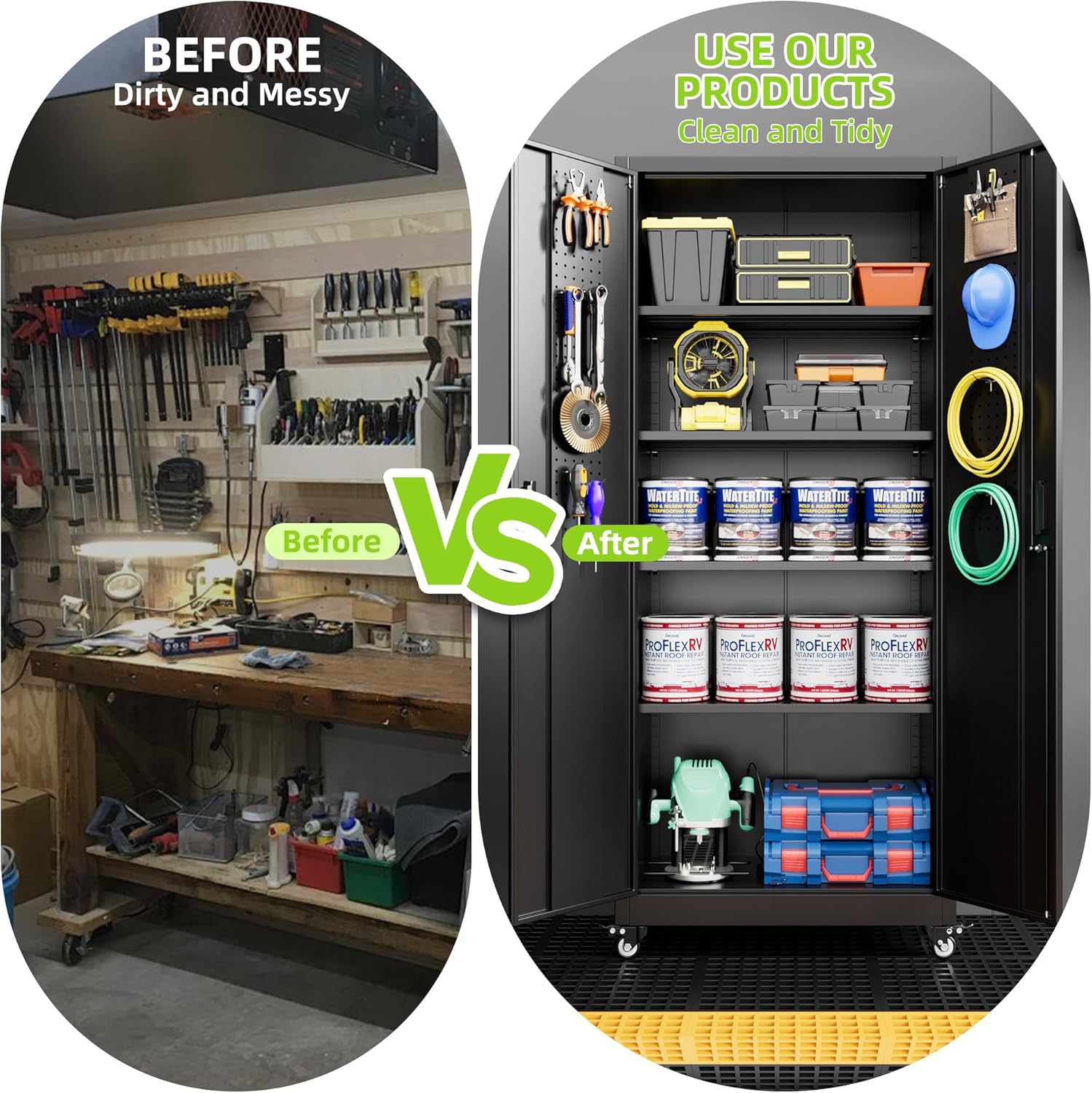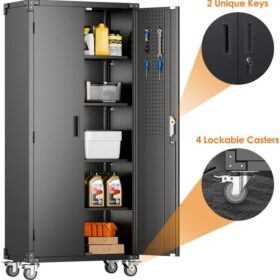 Aobabo 73”H Metal Garage Storage Cabinet with Wheels,Steel Cabinets with 2 Doors and 4 Adjustable Shelves for Home Office,Required Assembly,Black