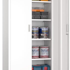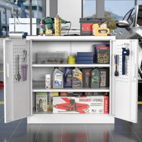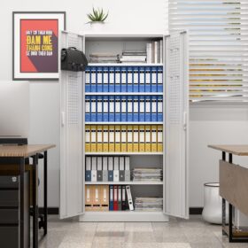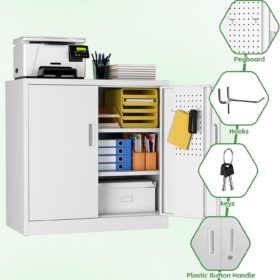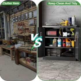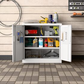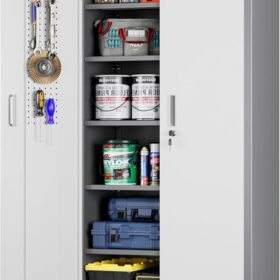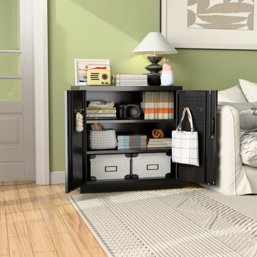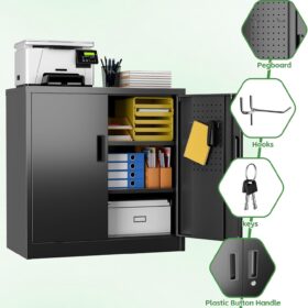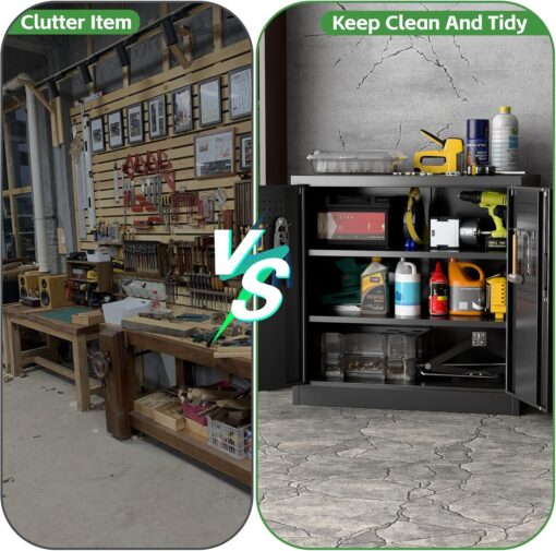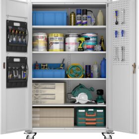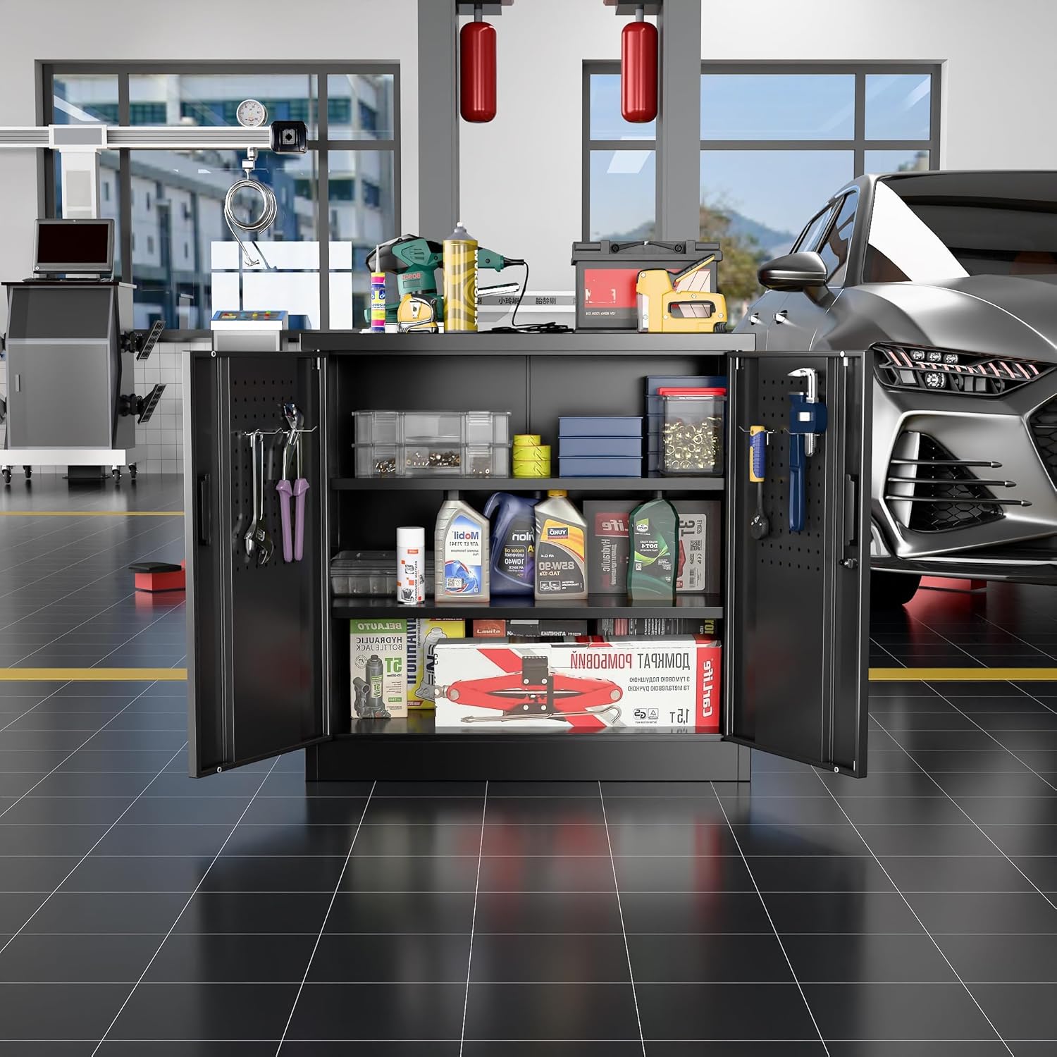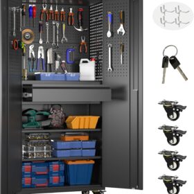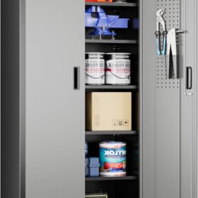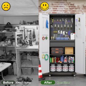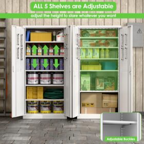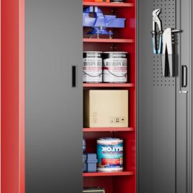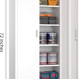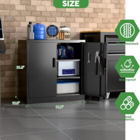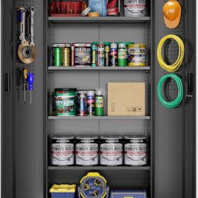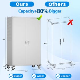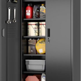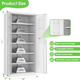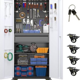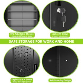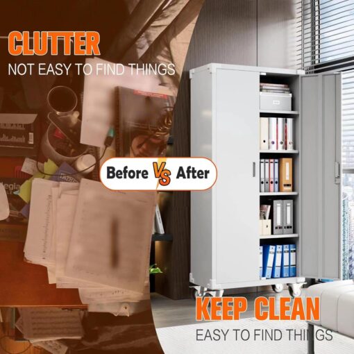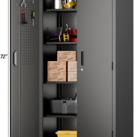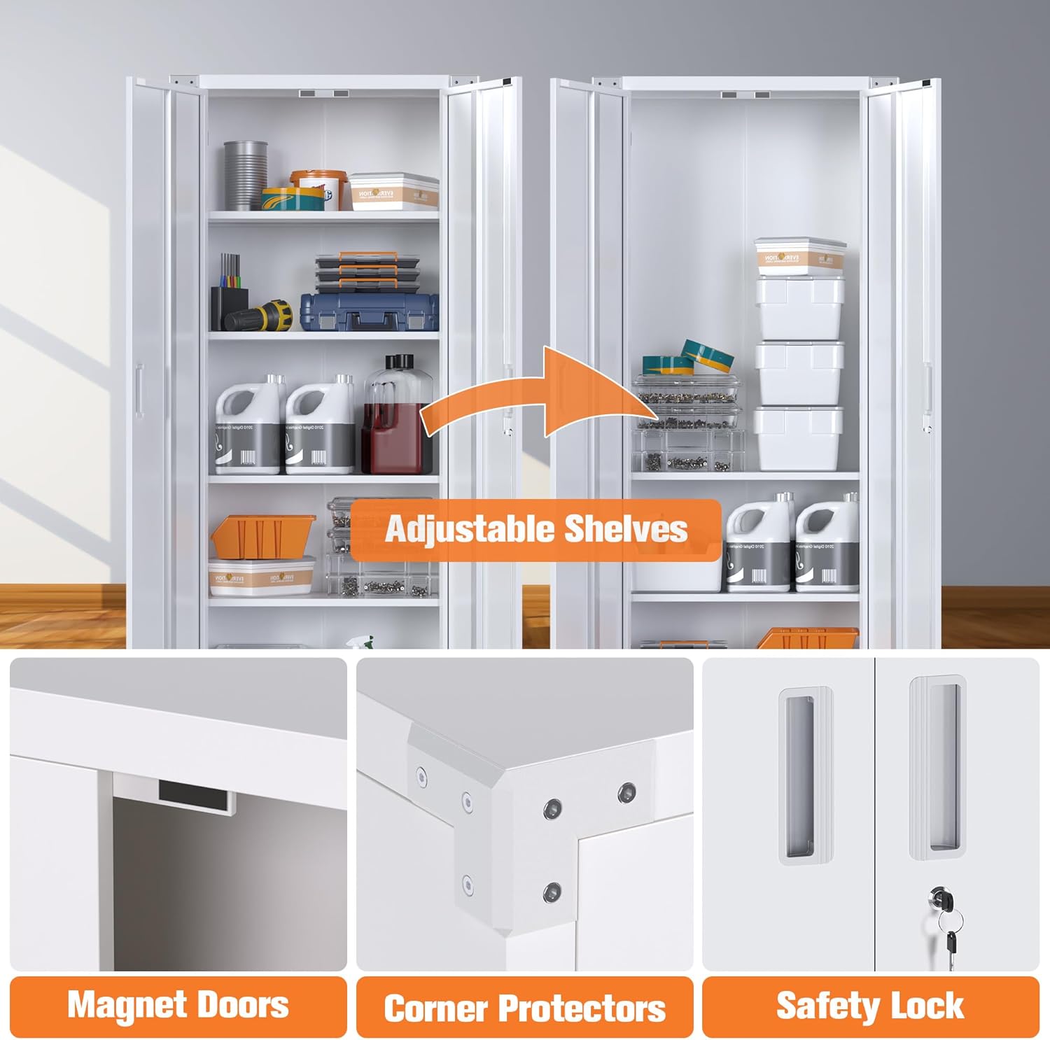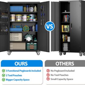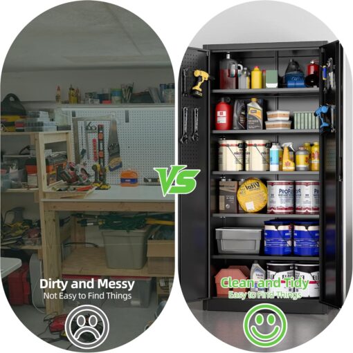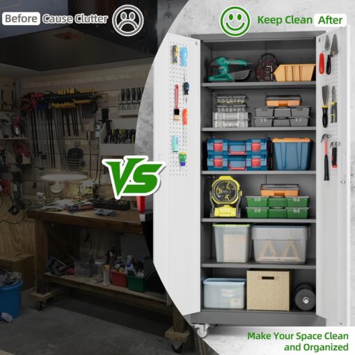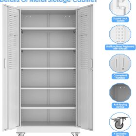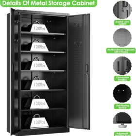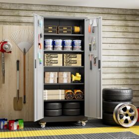 Aobabo 73”H Metal Garage Storage Cabinet with Wheels,Steel Cabinets with 2 Doors and 4 Adjustable Shelves for Home Office,Required Assembly,Black