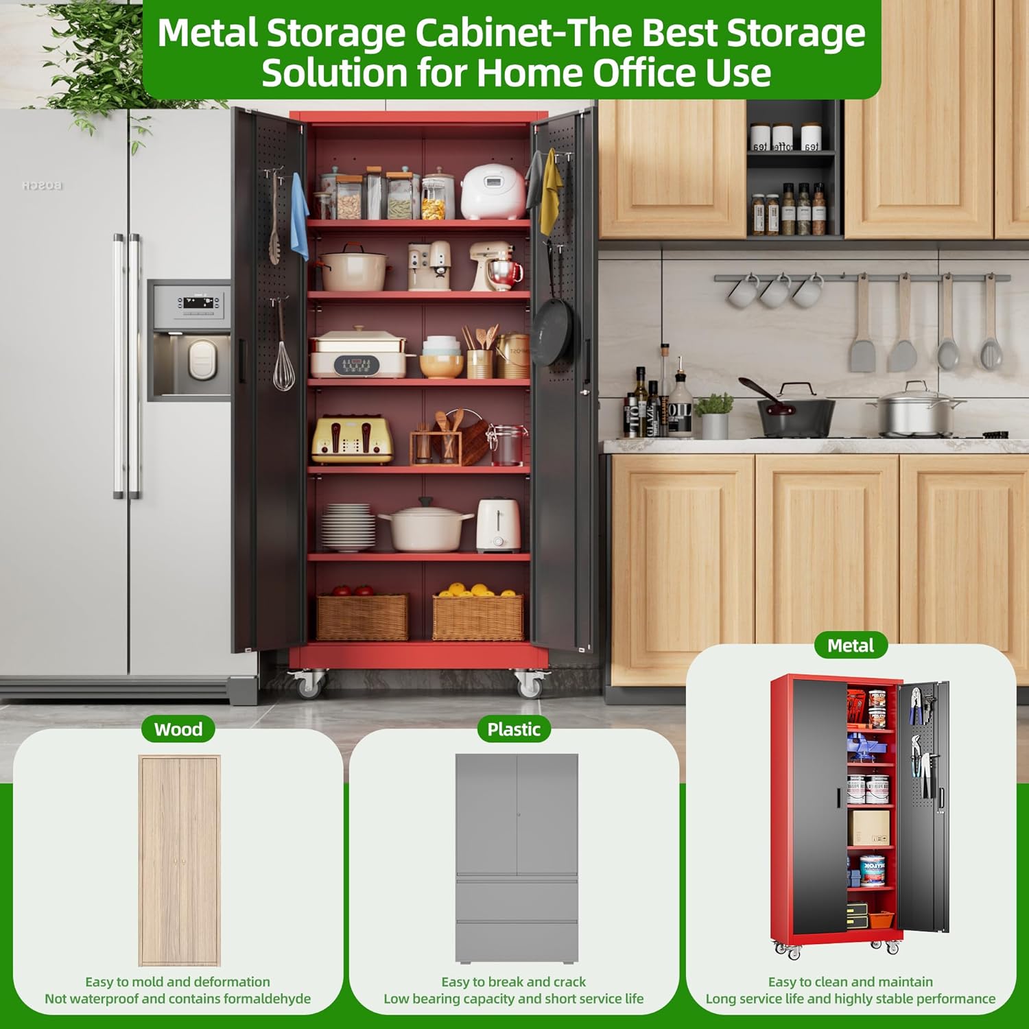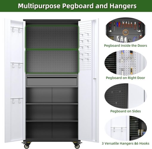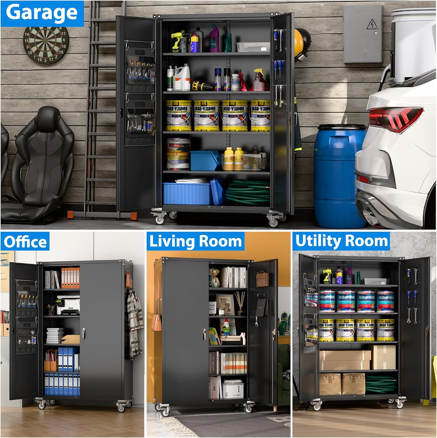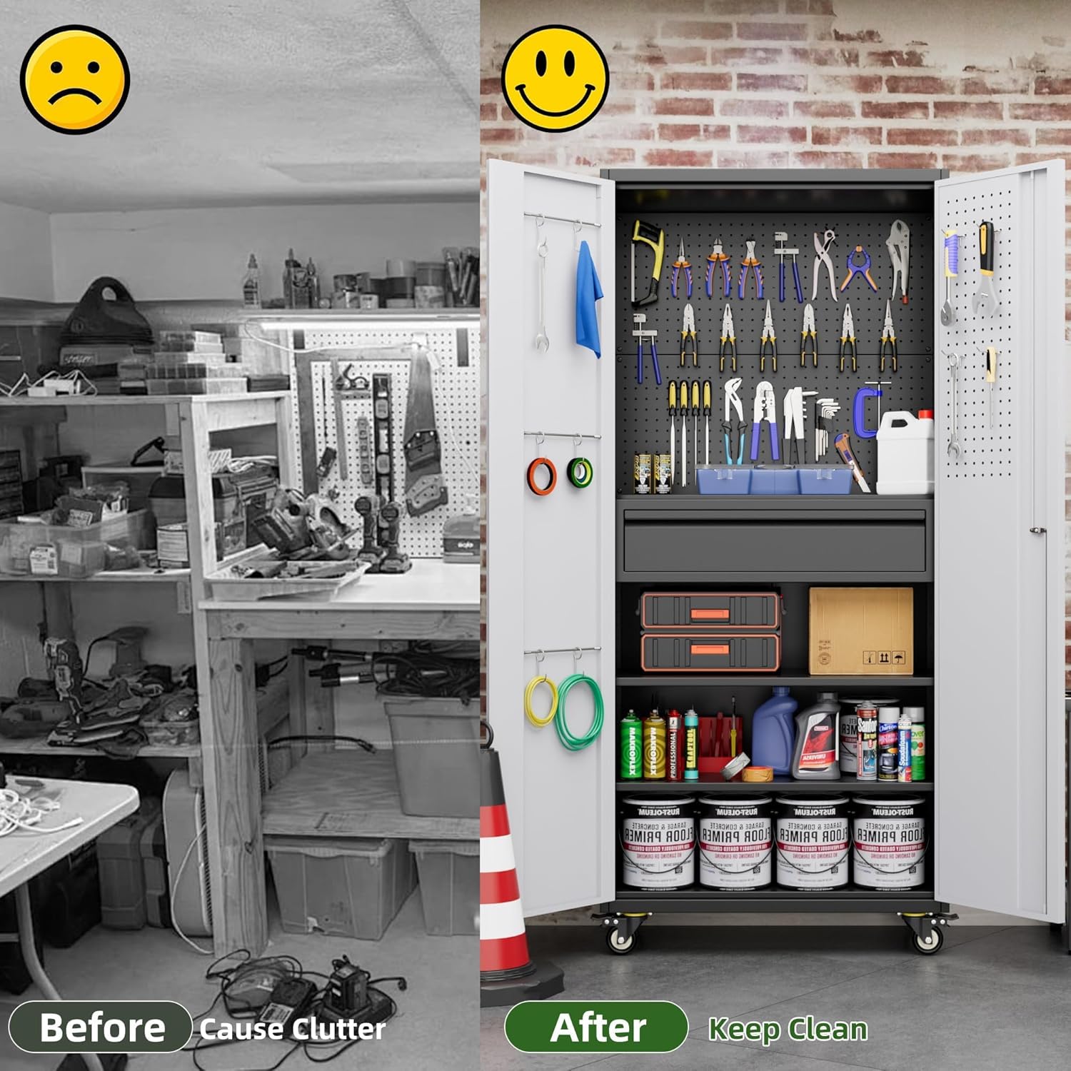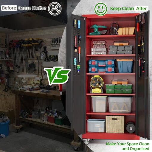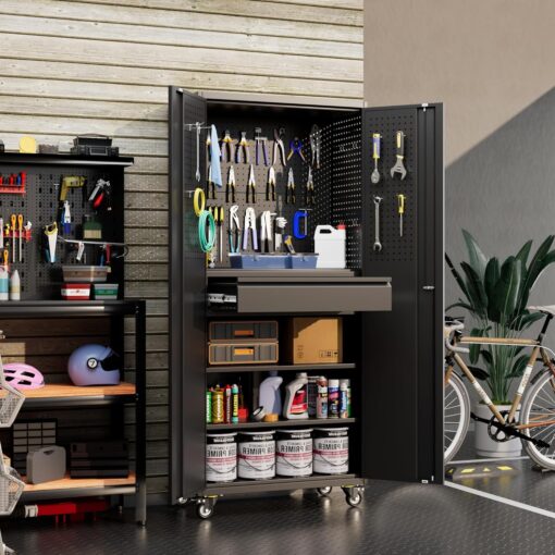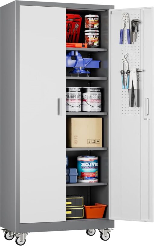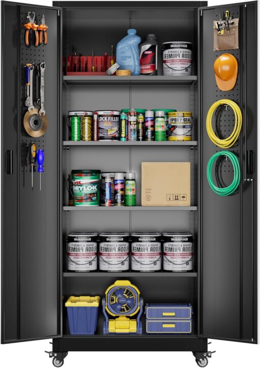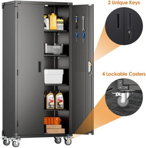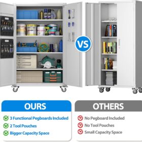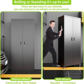 - [Garage Storage Cabinet] Plenty of storage. “great garage cleanup”.You can move them around as needed and the casters and wheels work great on all the different surfaces inyour garage. Extra storage strong and fit your needs, it is sufficient for garage use.