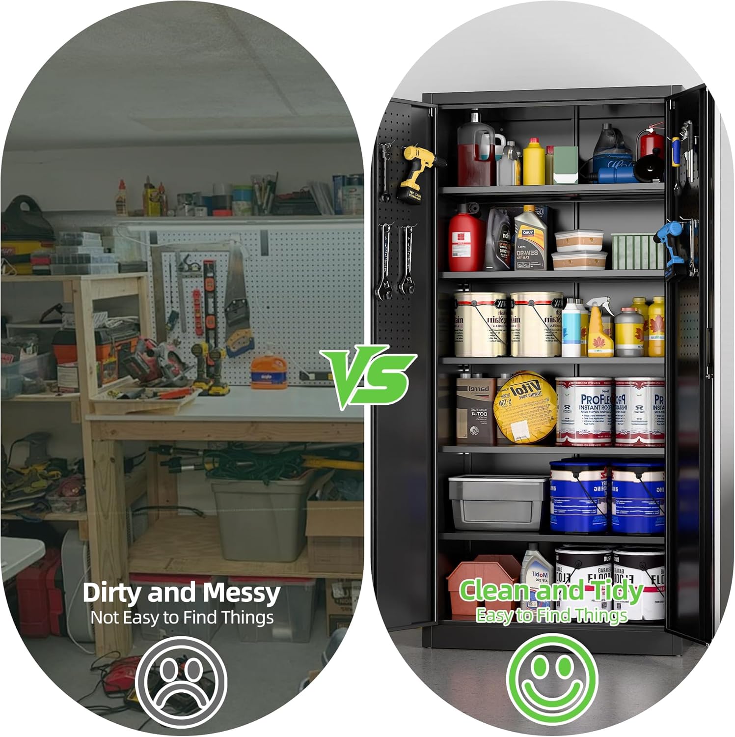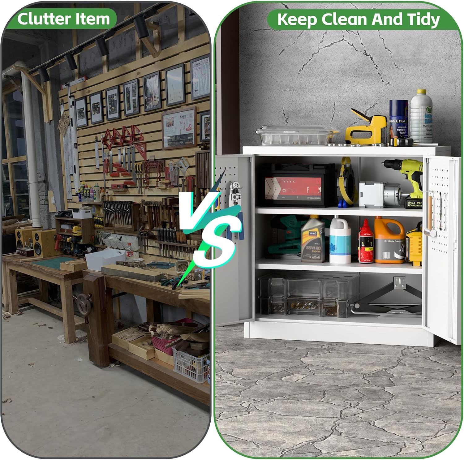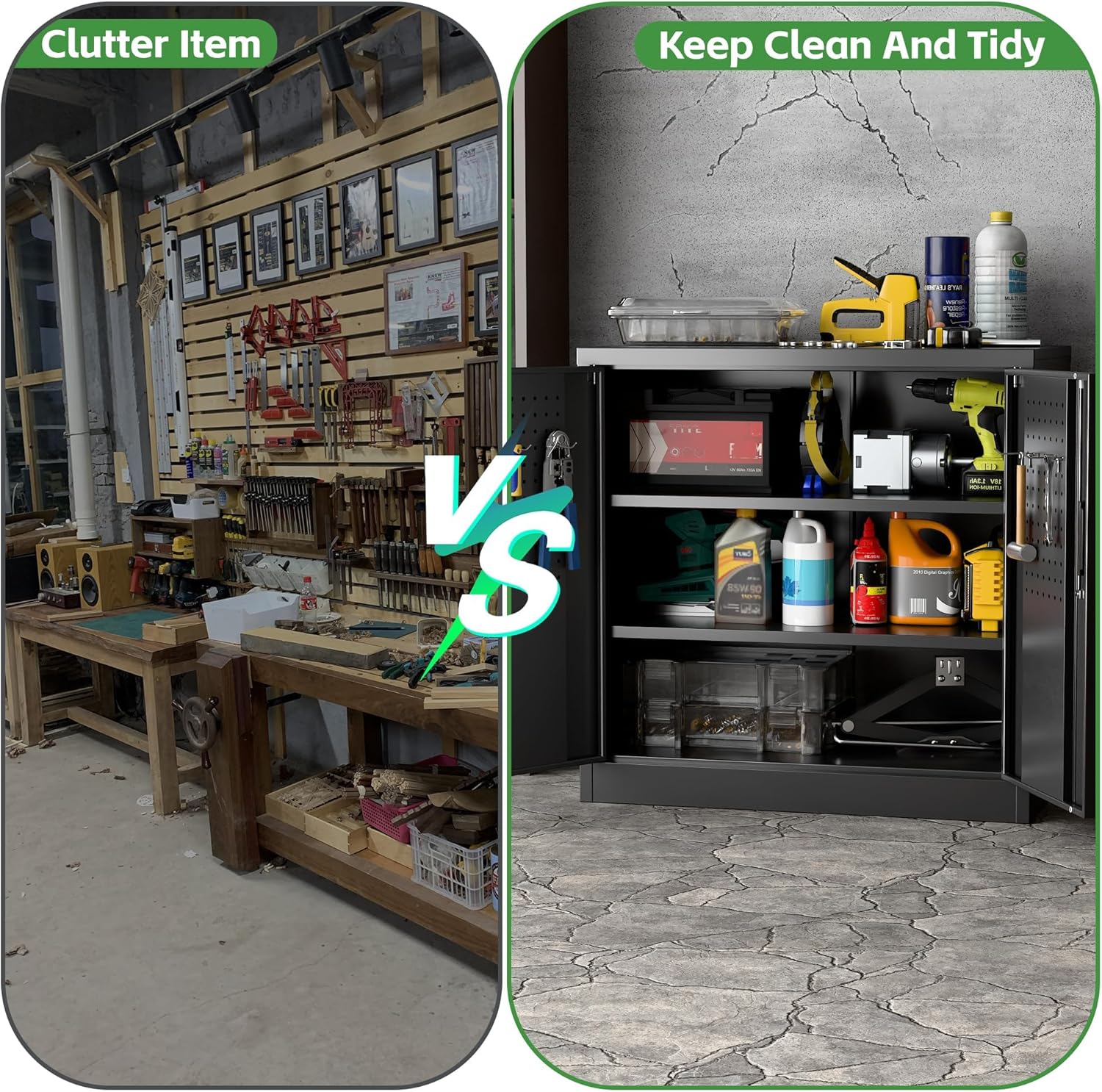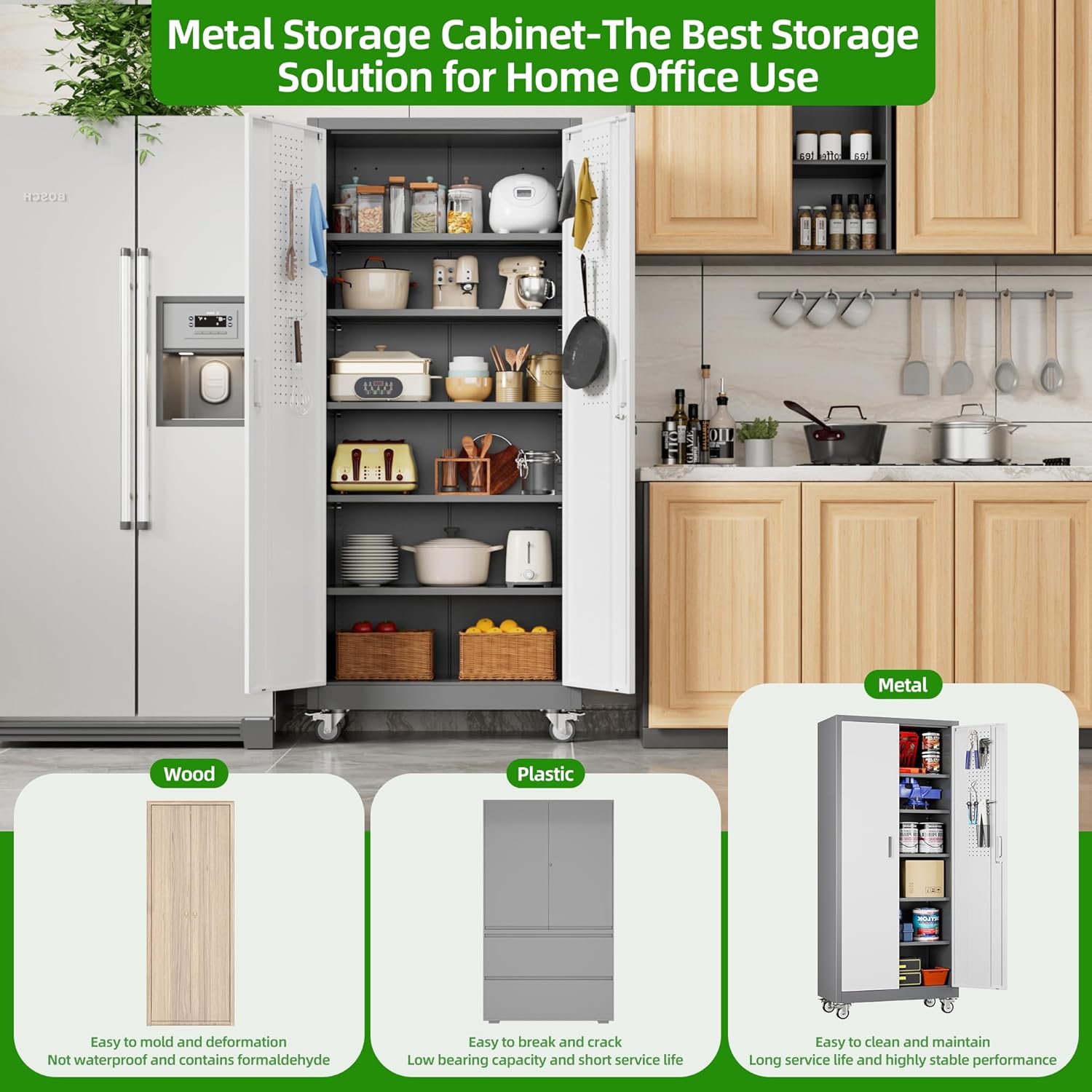 - [Garage Storage Cabinet] Plenty of storage. “great garage cleanup”.You can move them around as needed and the casters and wheels work great on all the different surfaces inyour garage. Extra storage strong and fit your needs, it is sufficient for garage use.