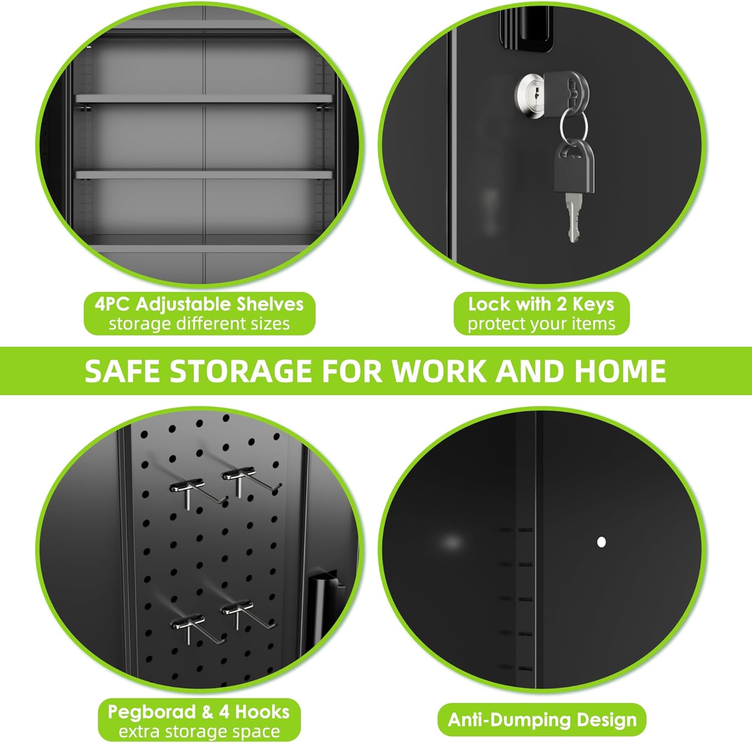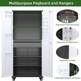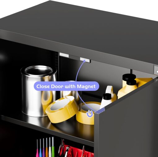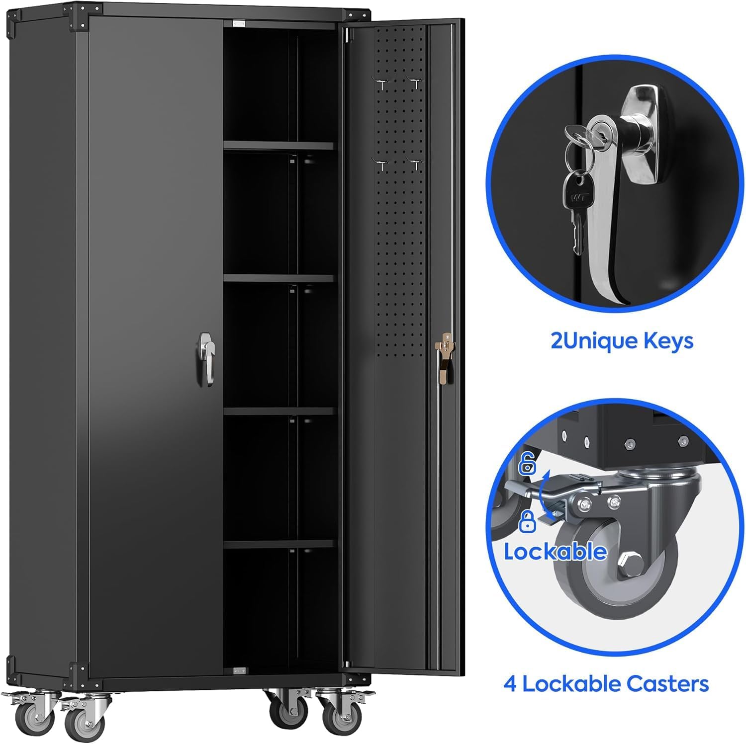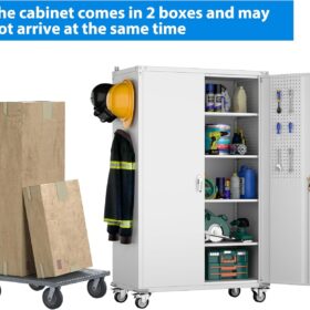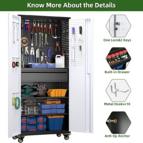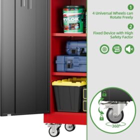 - [Lockable] For the lockable storage cabinet, 1 lock with 2 keys can ensures safety and convenience. The steel storage cabinet with wheels has 2 wall-mounted brackets, you can choose to connect the storage cabinet to the wall.