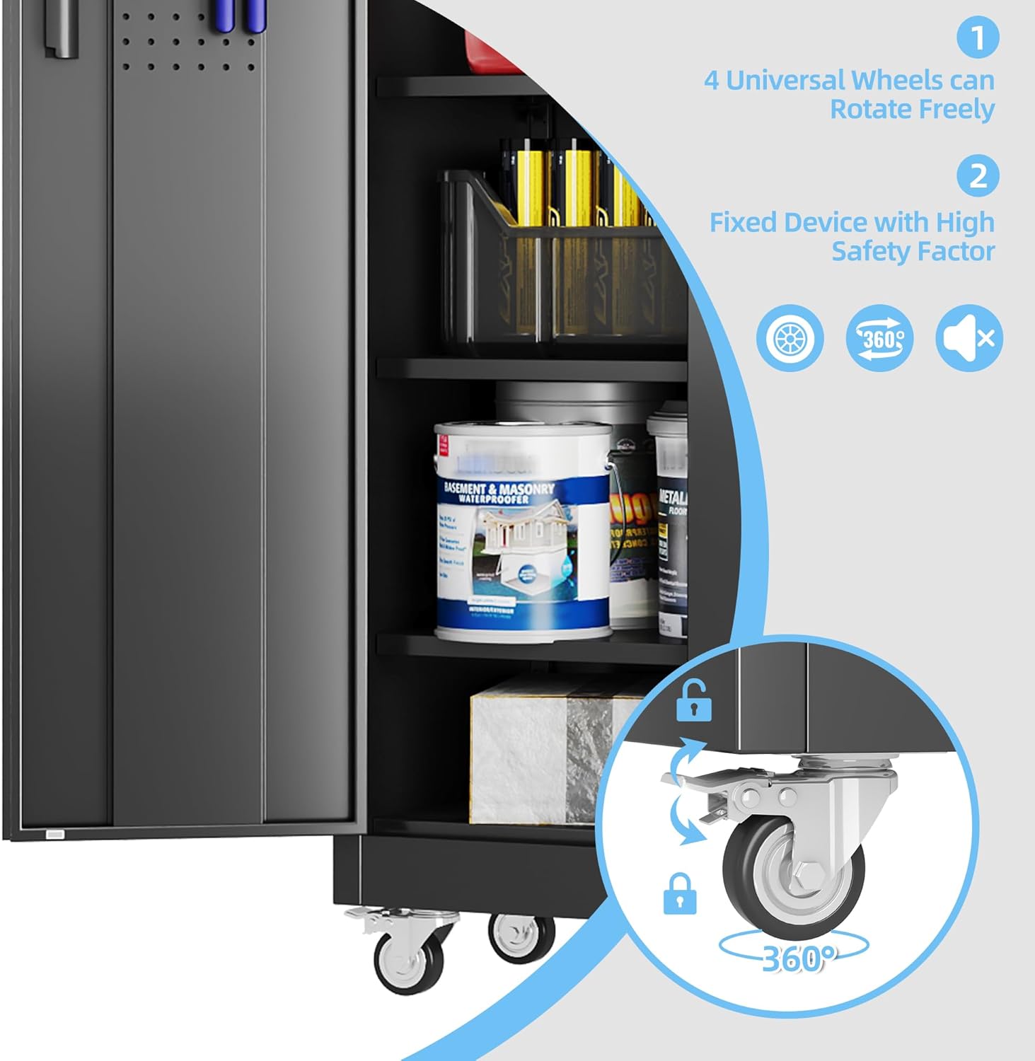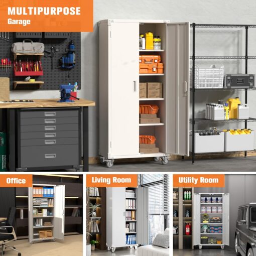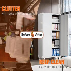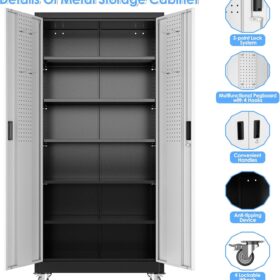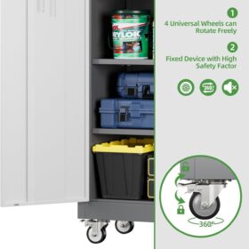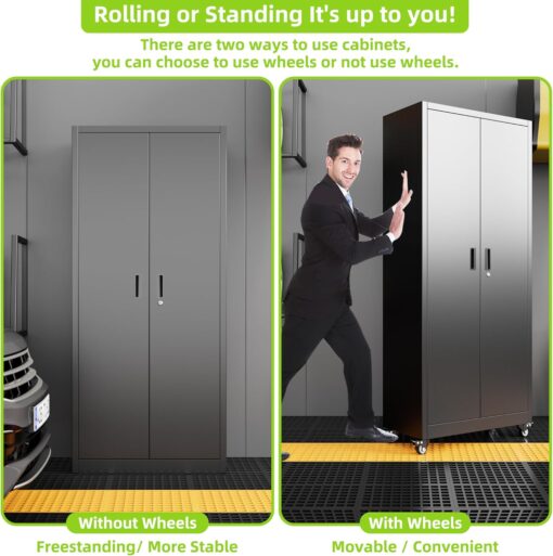 - [Swivel Wheels with Lock] Metal storage cabinet with wheels has 4 lockable wheels,you can move them around as needed and the casters and wheels work great on all the different surfaces,besides the wheels can be locked and you can fix the cabinet where you want to place.