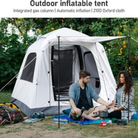 - 【Thickening Double-Layer Air Columns 】Experience superior stability and durability with the tent’s unique air column design. Unlike traditional pole tents, it features a double-layer construction of 210D Oxford fabric reinforced with TPU air columns. This innovative design offers easier setup, enhanced flexibility