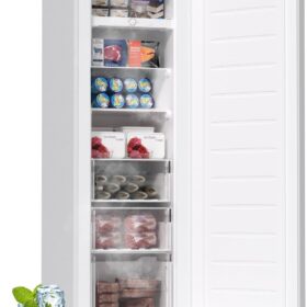 - Freezer Size:The Bangson 7 cu. ft. Upright Freezer provides ample storage space for fruits/vegetables/seafood/ice cream so you can always enjoy fresh food. You can remove the crisper depending on the food placement. Dimensions: 21.5 inches L, 23.3 inches D, and 56.0 inches H.