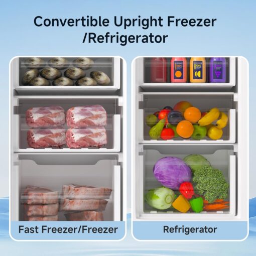 - Flexible Food Storage:Our Bangson Convertible Deep Freezer/Refrigerator has two pulleys for easy freezer movement. The freezer is also equipped with three freshness drawer boxes that provide separate storage areas for fruits and vegetables, making cleaning more hygienic.