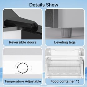- User-Friendly Design:The removable door seal makes cleaning a breeze. It also includes an ice tray and a defrost tool. For any inquiries, please don’t hesitate to contact us as we are committed to providing excellent customer service.
