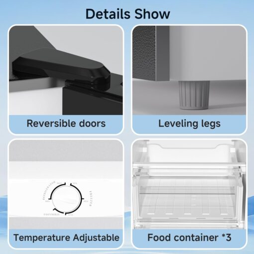 - Enhanced Details:BANGSON’s compact refrigerator comes with a reversible door to suit your preferences. Leveling feet on the bottom allow for stable placement on uneven floors. The built-in handle not only makes it easy to open the freezer door, but it also makes the freezer cleaner and more aesthetically pleasing.