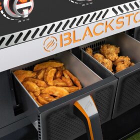 As the cornerstone of Blackstone Products, our 36-Inch Griddle Cooking Station offers an expansive 36″ x 21″, 756 sq. in. cooking surface; easy assembly with a quick and easy ignition button; two cantilevered work surfaces and a bottom shelf to make food preparation convenient; easy to remove griddle top, held stable by a stout steel frame and four industrial strength caster wheels, 2 of which lock; thick cold rolled steel griddle cooking surface; steel frame powder coated in protective black; and four independently controlled 15,000 BTU stainless-steel burners, for a total of 60,000 BTUs controlled low-to-high for versatile cooking options. We know you will love using our Blackstone 36″ Griddle Cooking Station this summer as much as we will!
