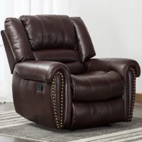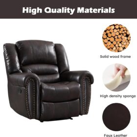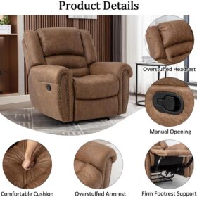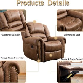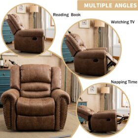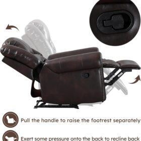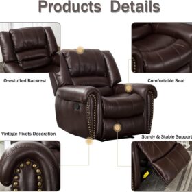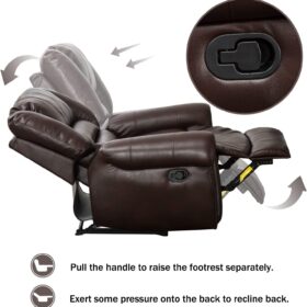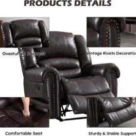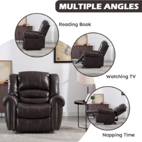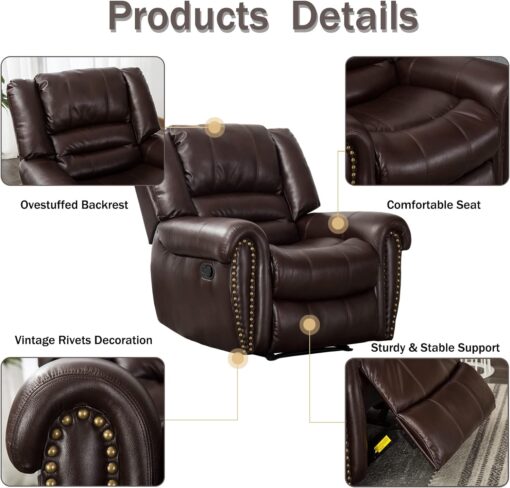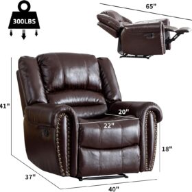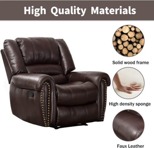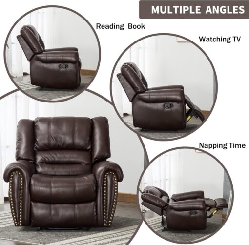- ✿Breathable Leather Recliner: As the use of high-quality faux leather for upholstery material, caring for the chair is quite easy. With high-density foam and laminated veneer lumber (LVL) system to provide maximum comfort and stability, suitable for living room, bedroom and home theater room, and brass nails set off a classic and luxurious style of decoration.