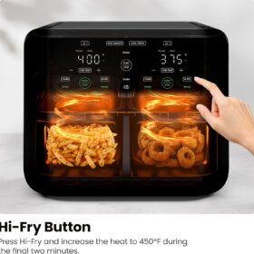 - VERSATILE COOKING OPTIONS: Dual-zone air fryer technology gives you the flexibility to cook different dishes simultaneously or to switch from one basket to the other easily.