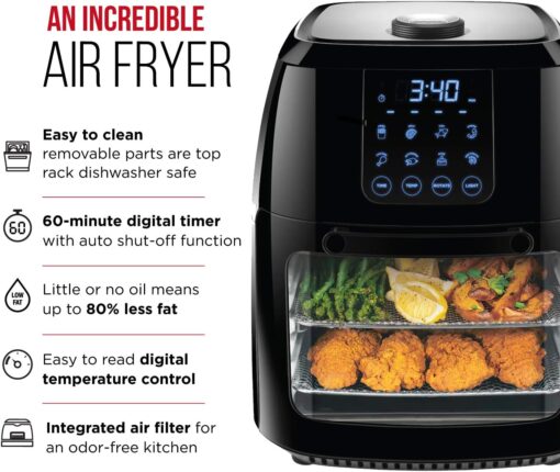 - Monitor cooking progress: The interior lights and extra-large air fryer oven window allow you to check your food’s cooking progress