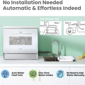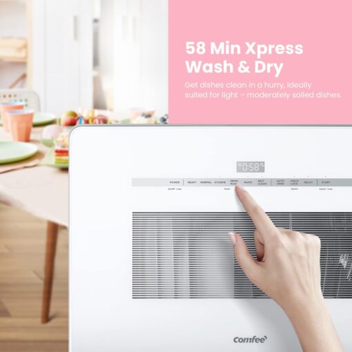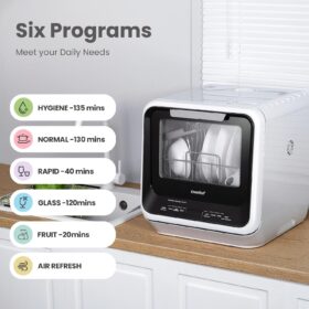 | Additional Features | Adjustable Rack, Touch Panel, Free Installation, Hi-temp Wash, Quick Wash Cycle, Air Refresh Function, 360° Range Cleaning, See-through Window, Ultra-Compact Design, 1/3 Water Consumption Compared to Handwashing |