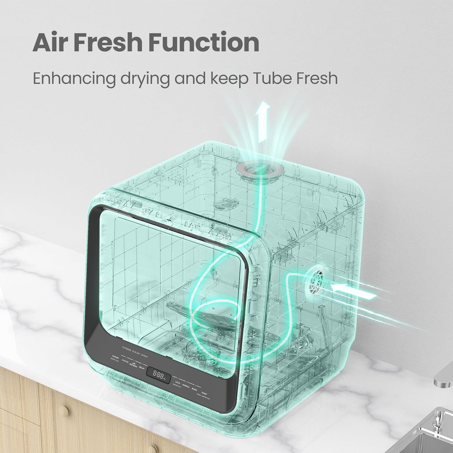 | Additional Features | Adjustable Rack, Touch Panel, Free Installation, Hi-temp Wash, Quick Wash Cycle, Air Refresh Function, 360° Range Cleaning, See-through Window, Ultra-Compact Design, 1/3 Water Consumption Compared to Handwashing |