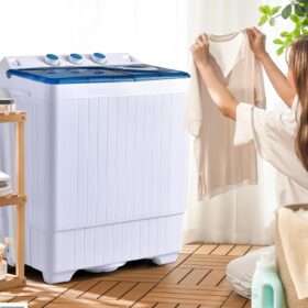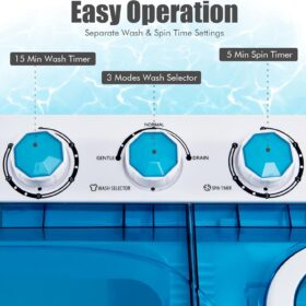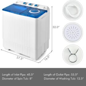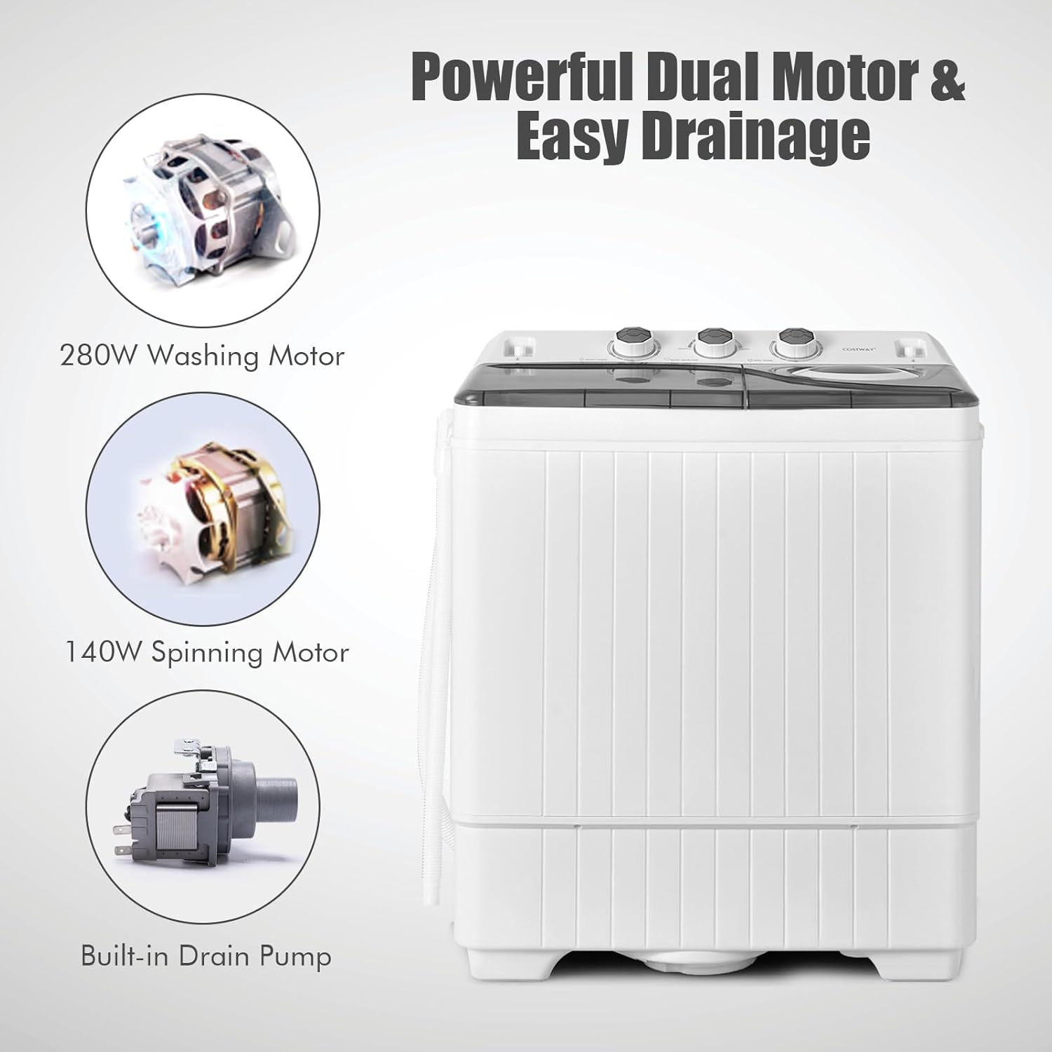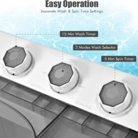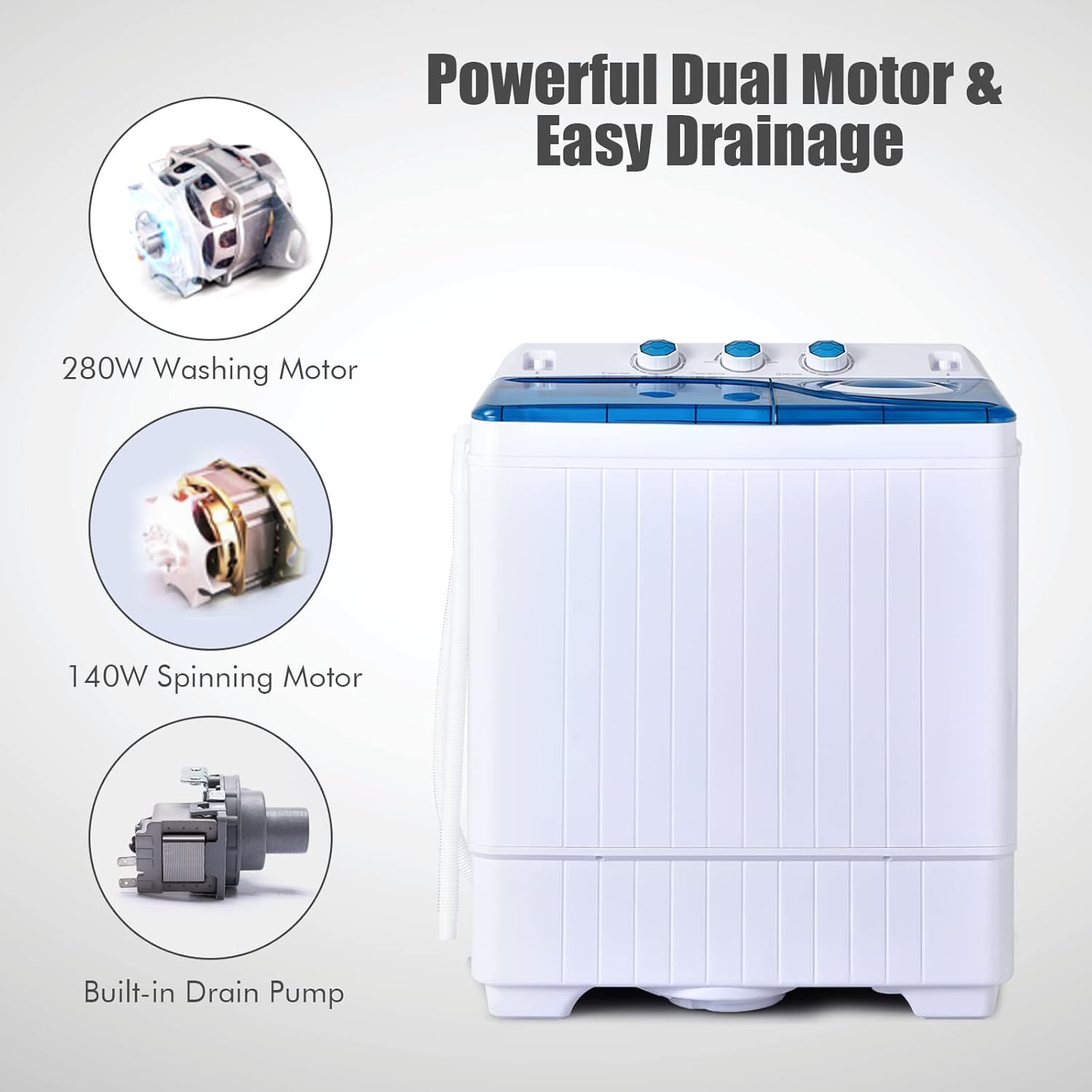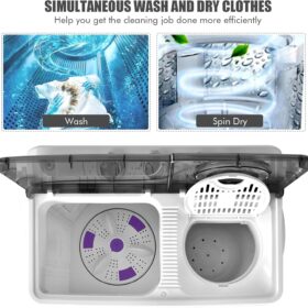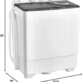 - [26Lbs Large Capacity] Our compact twin tub washing machine has a total capacity of 26 pounds. You can simultaneously put 18 pounds of clothes into the laundry tub and 8 pounds of clothes into the spin tub to save valuable time. In addition, the transparent lid allows for easy inspection of the washing/spinning process at any time.