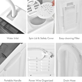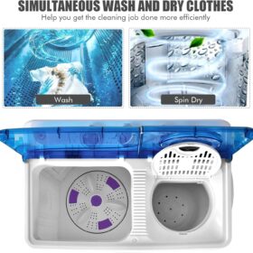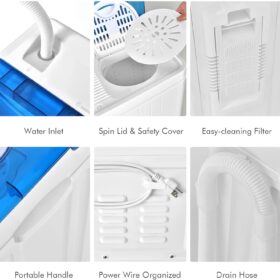 - [Compact Washing Machine] This portable washing machine allows you to wash and spin clothes at the same time. It takes up little space in your room, making it perfect for apartments dormitories balconies RVs home and more.