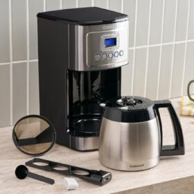 - CONVENIENT DESIGN: This Cuisinart coffee maker features a backlit LCD that’s easy to read, a ready tone that can be turned on or off, and an indicator light that signals when it’s time to decalcify.