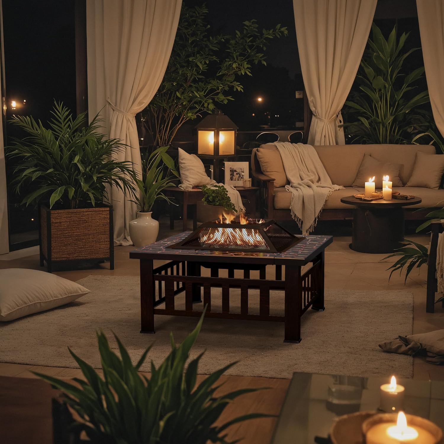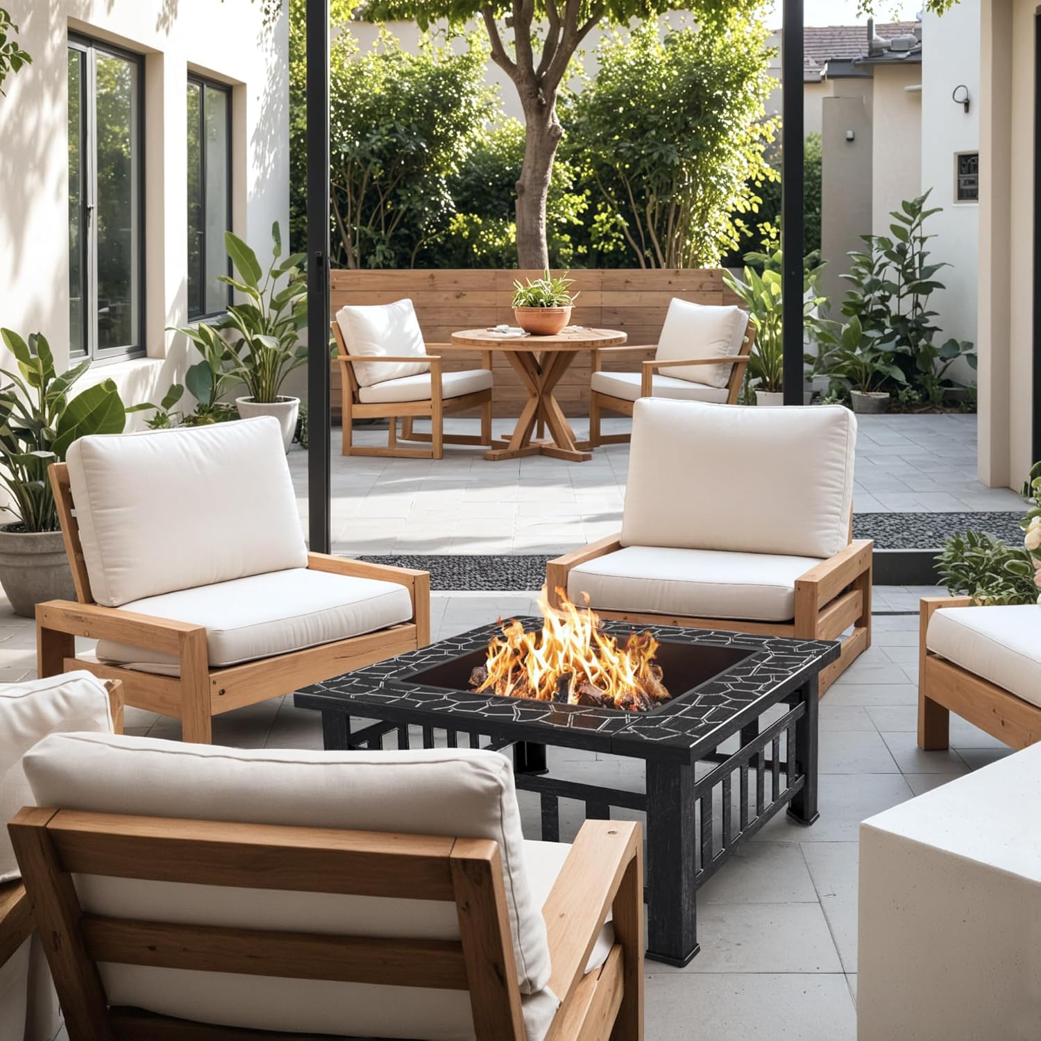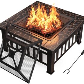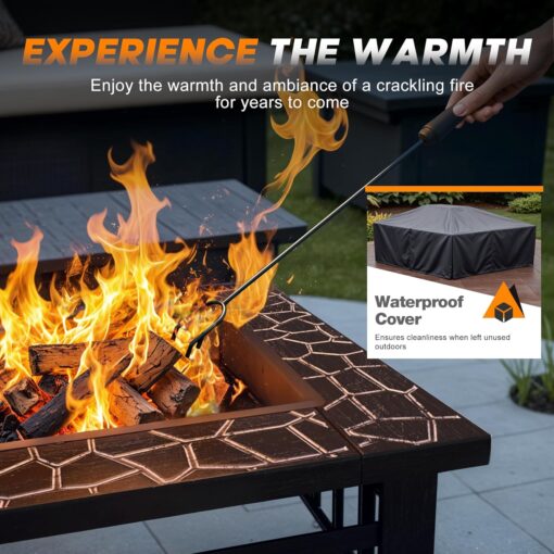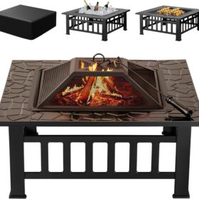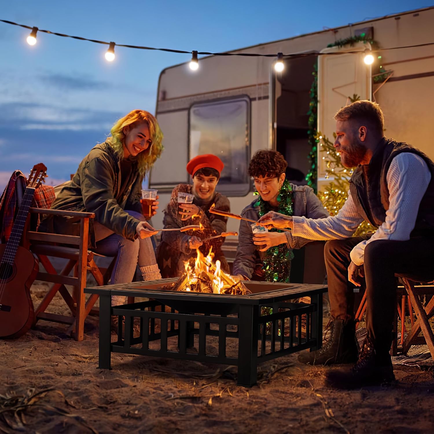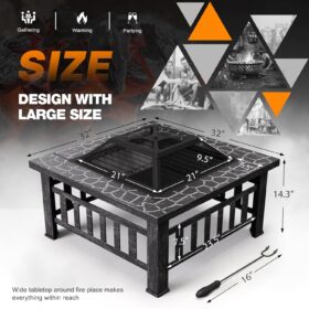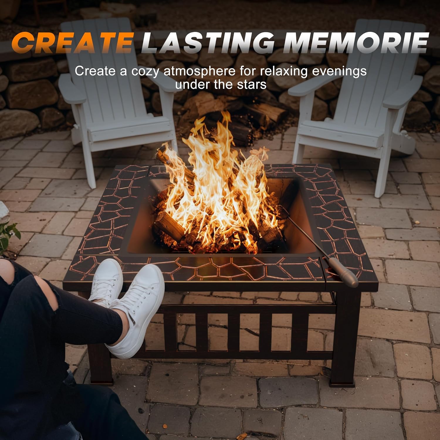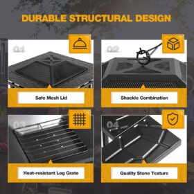 - [ Reliable Security ]: Firepit table features square design with sturdy legs for stability, while the mesh spark screen and poker provided effectively prevent sparks from flying and safely move the grill