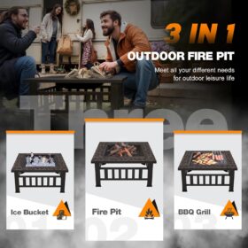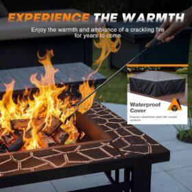 - [ Top-notch Material ]: Outdoor fire pit is made of heavy-duty steel frame treated with high-temperature coating, and comes with a waterproof cover to ensure long-lasting durability outdoors while also preventing rust