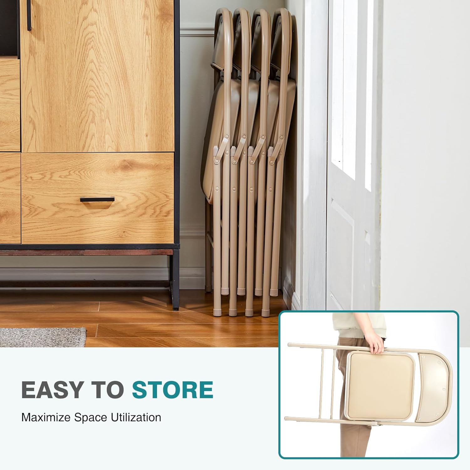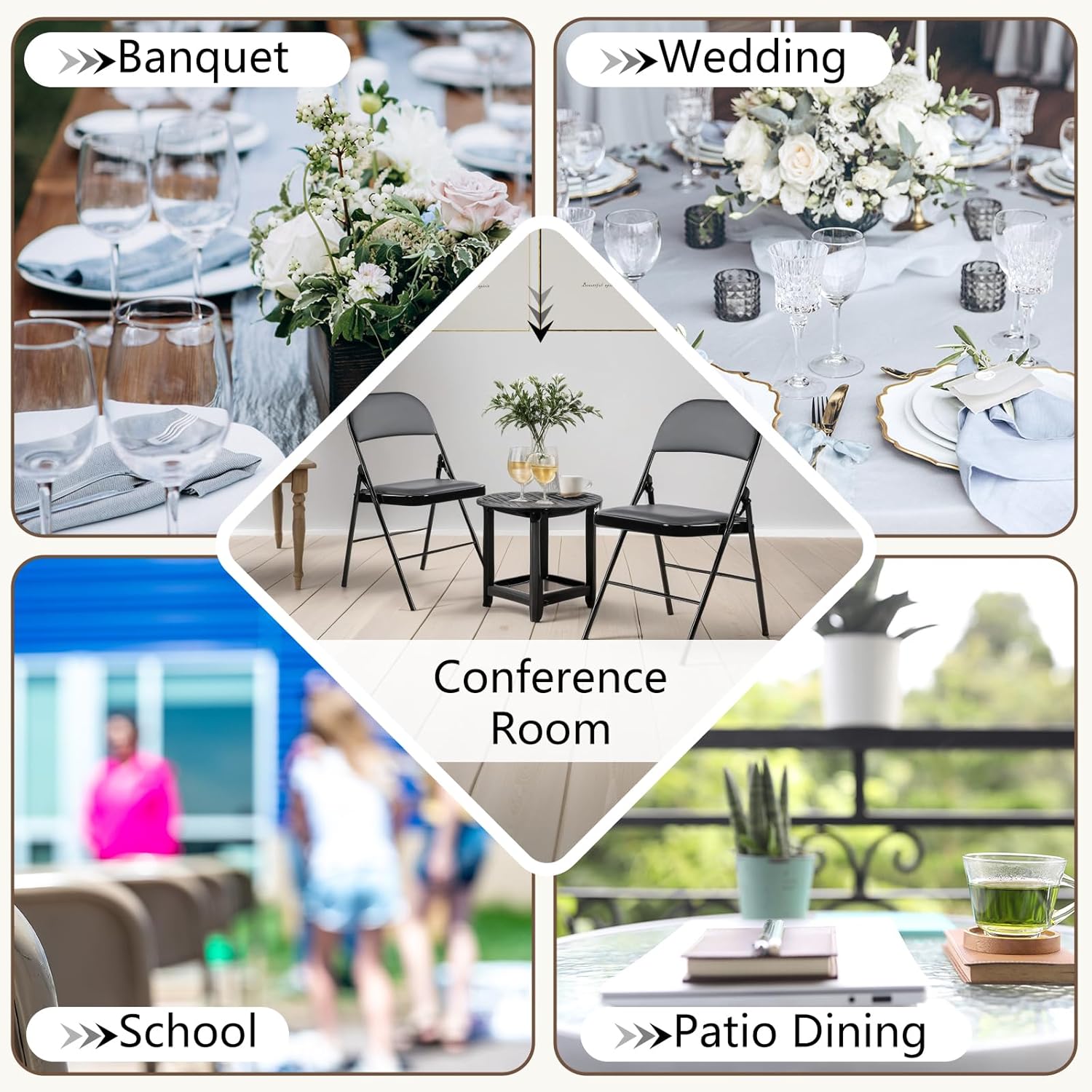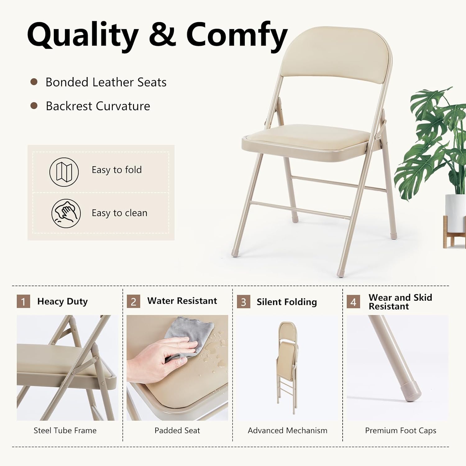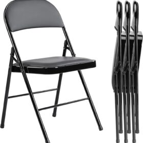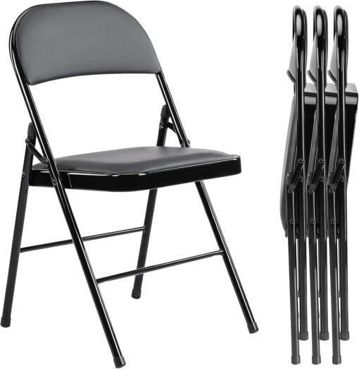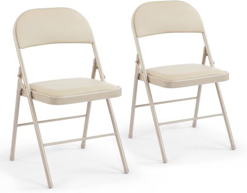 DUMOS 2 Pack Leather Padded Folding Chair, Indoor Outdoor Portable Stackable Commercial Seat