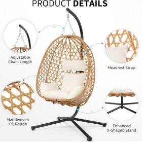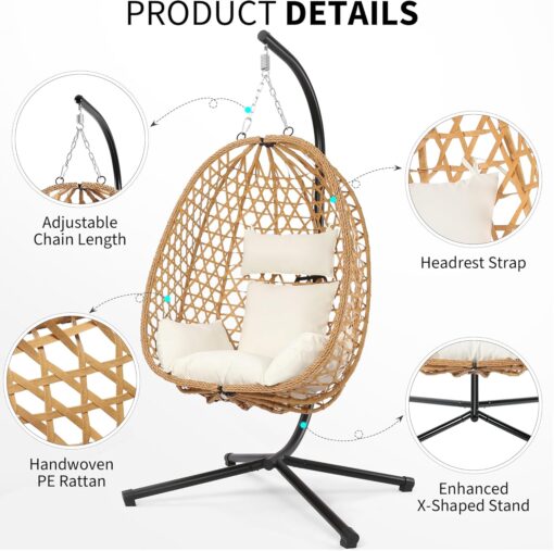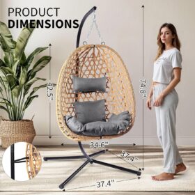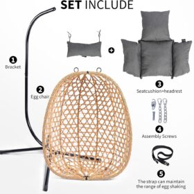 Egg Chair with Stand Patio Wicker Hanging Chair Hammock Swing Chair 350LBS Capacity