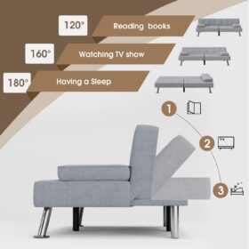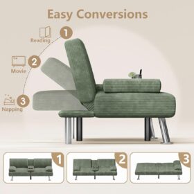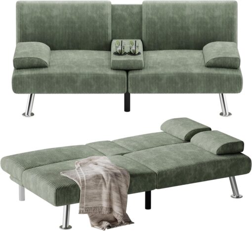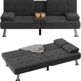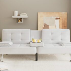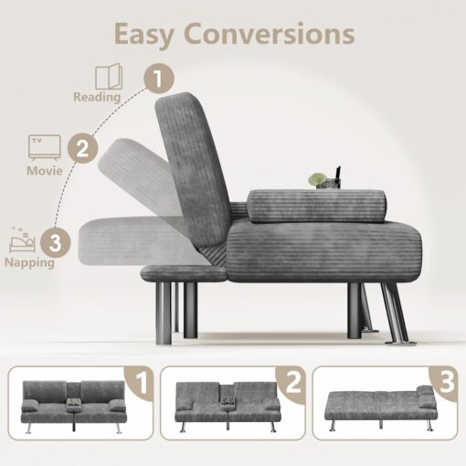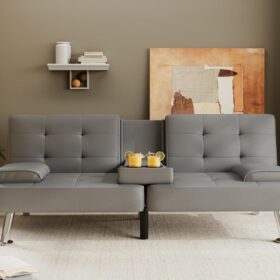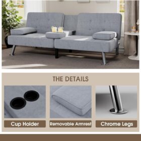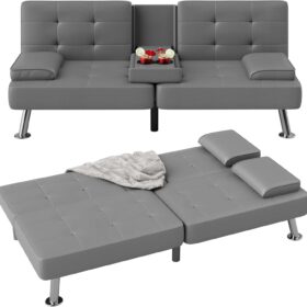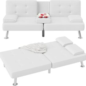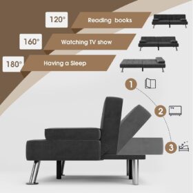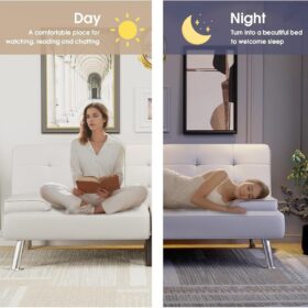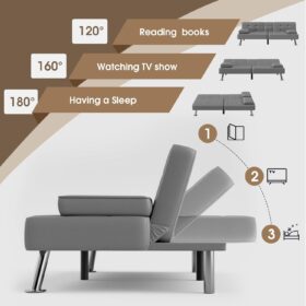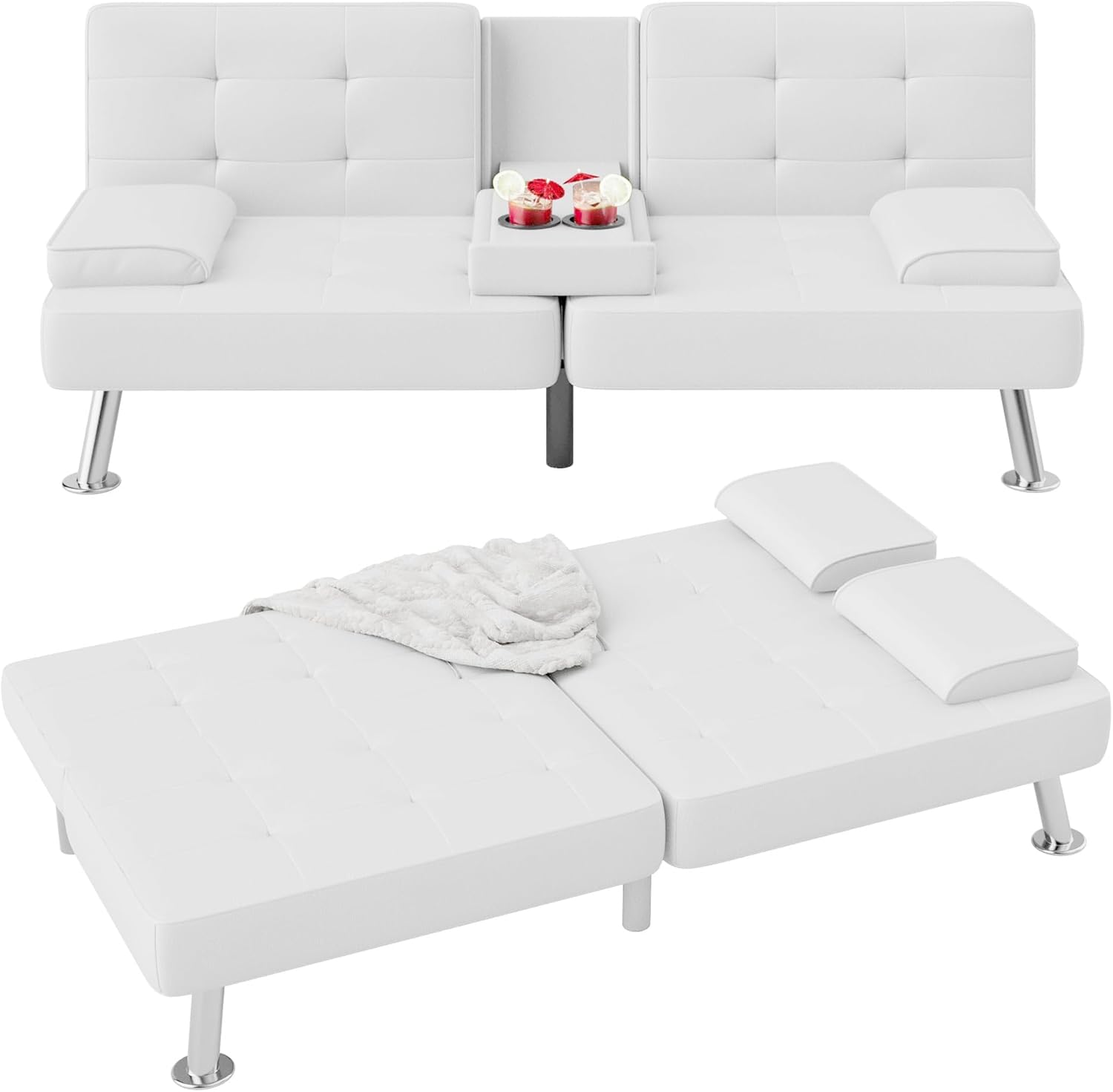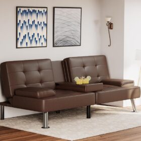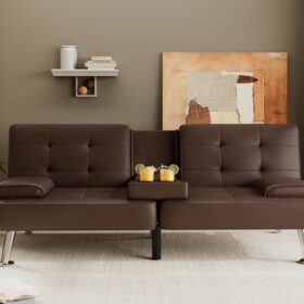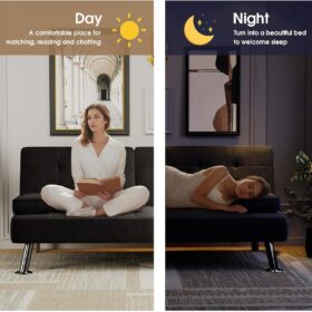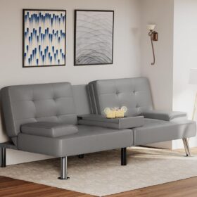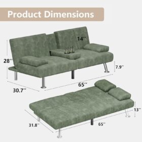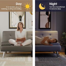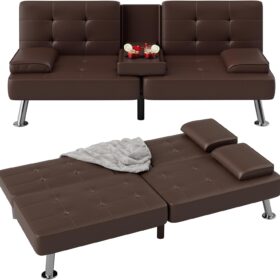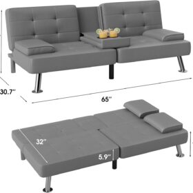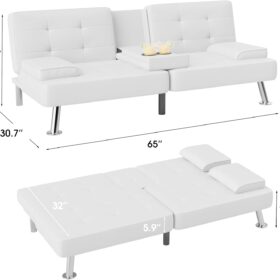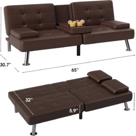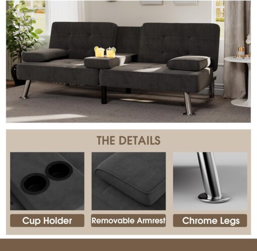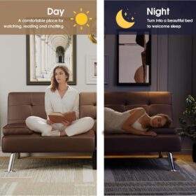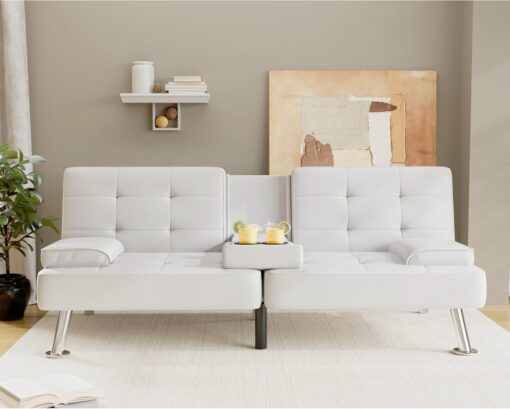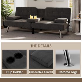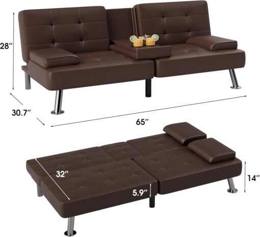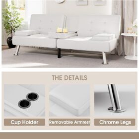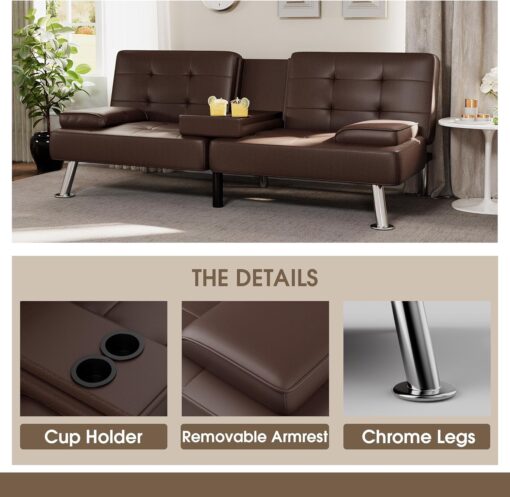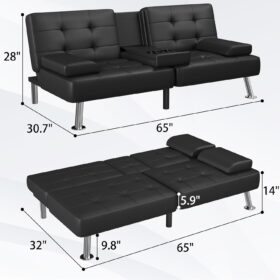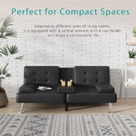 Flamaker Futon Sofa Bed Modern Folding Futon Set Convertible Recliner Lounge for Living Room with 2 Cup Holders, Removable Armrests (PU Leather, Black)