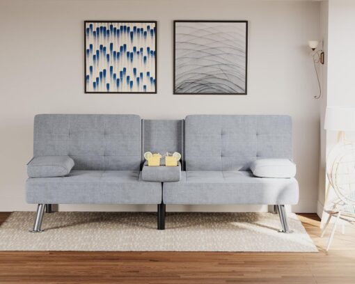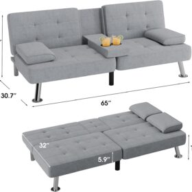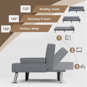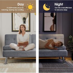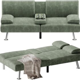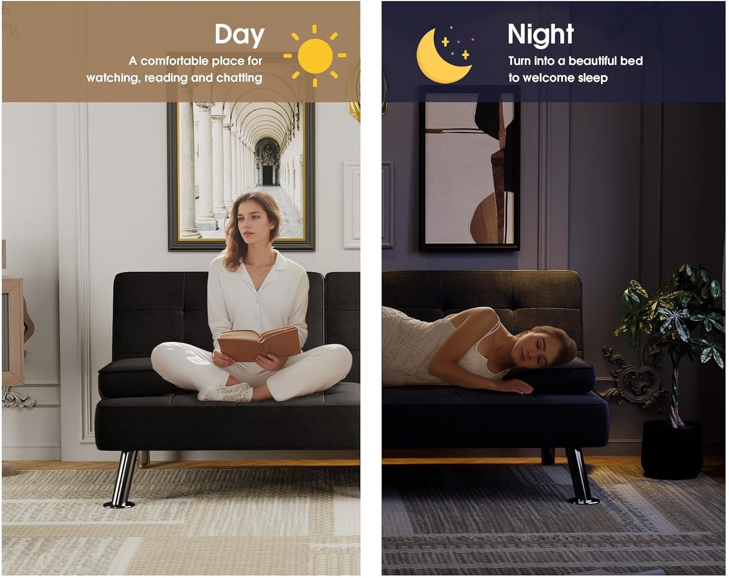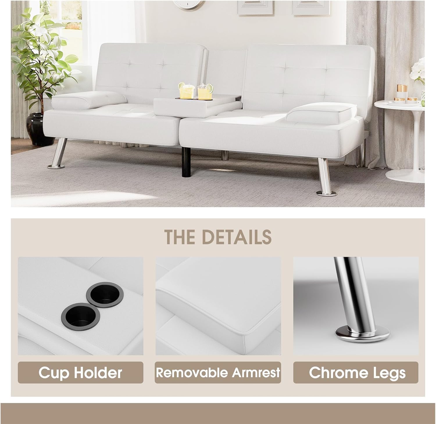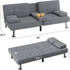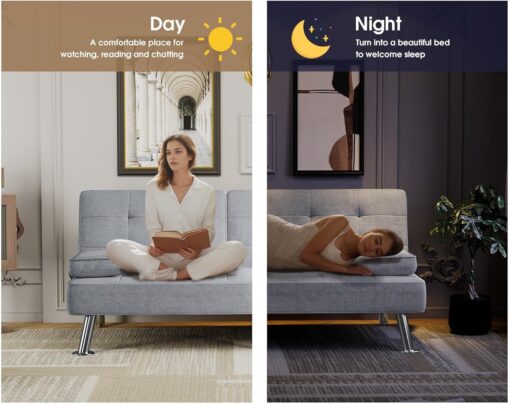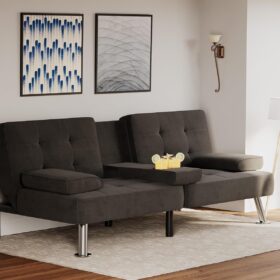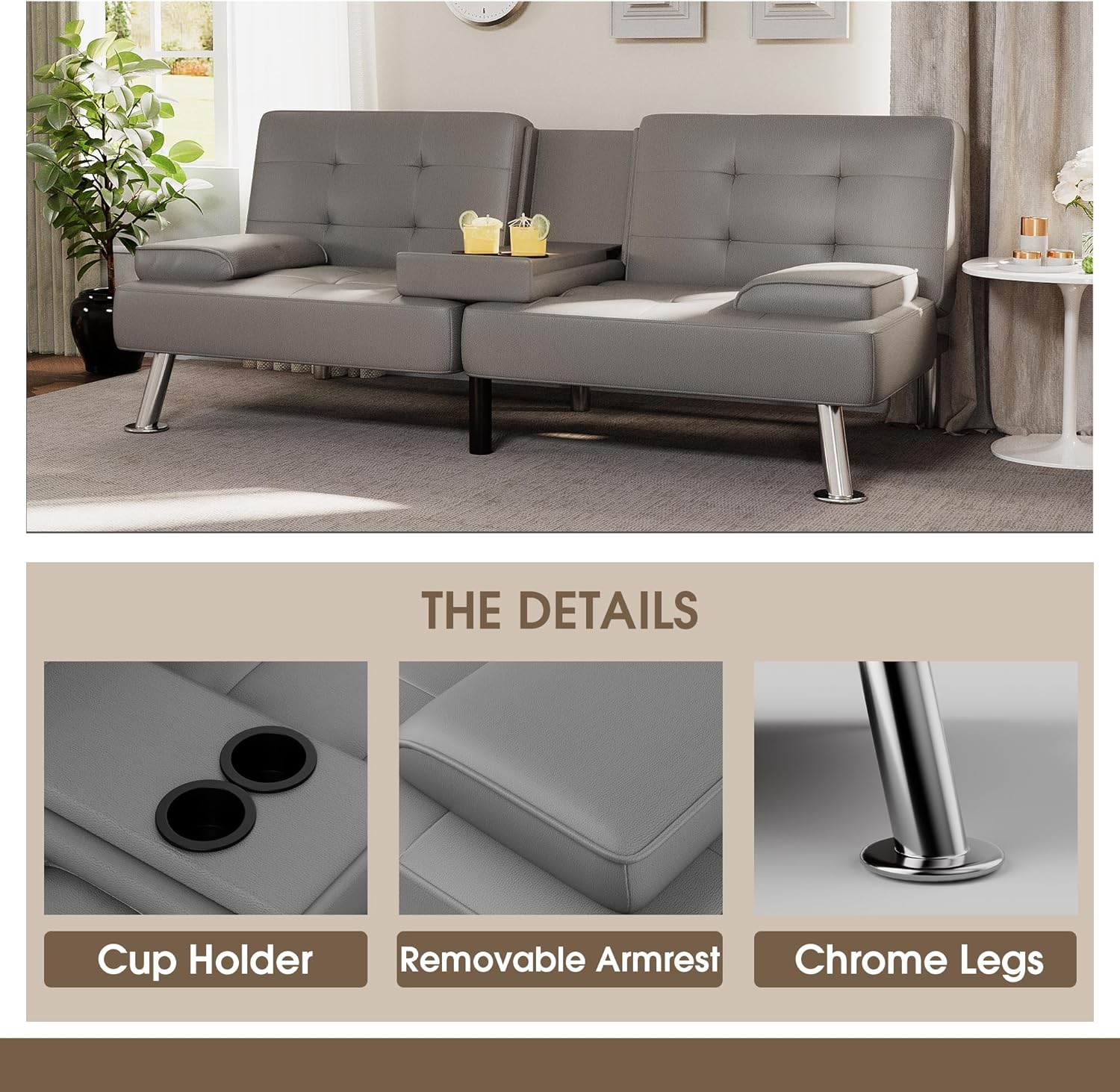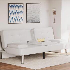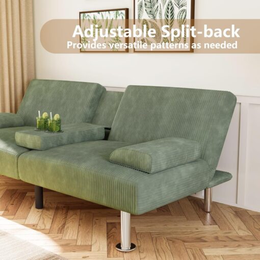 Flamaker Futon Sofa Bed Modern Folding Futon Set Convertible Recliner Lounge for Living Room with 2 Cup Holders, Removable Armrests (PU Leather, Black)