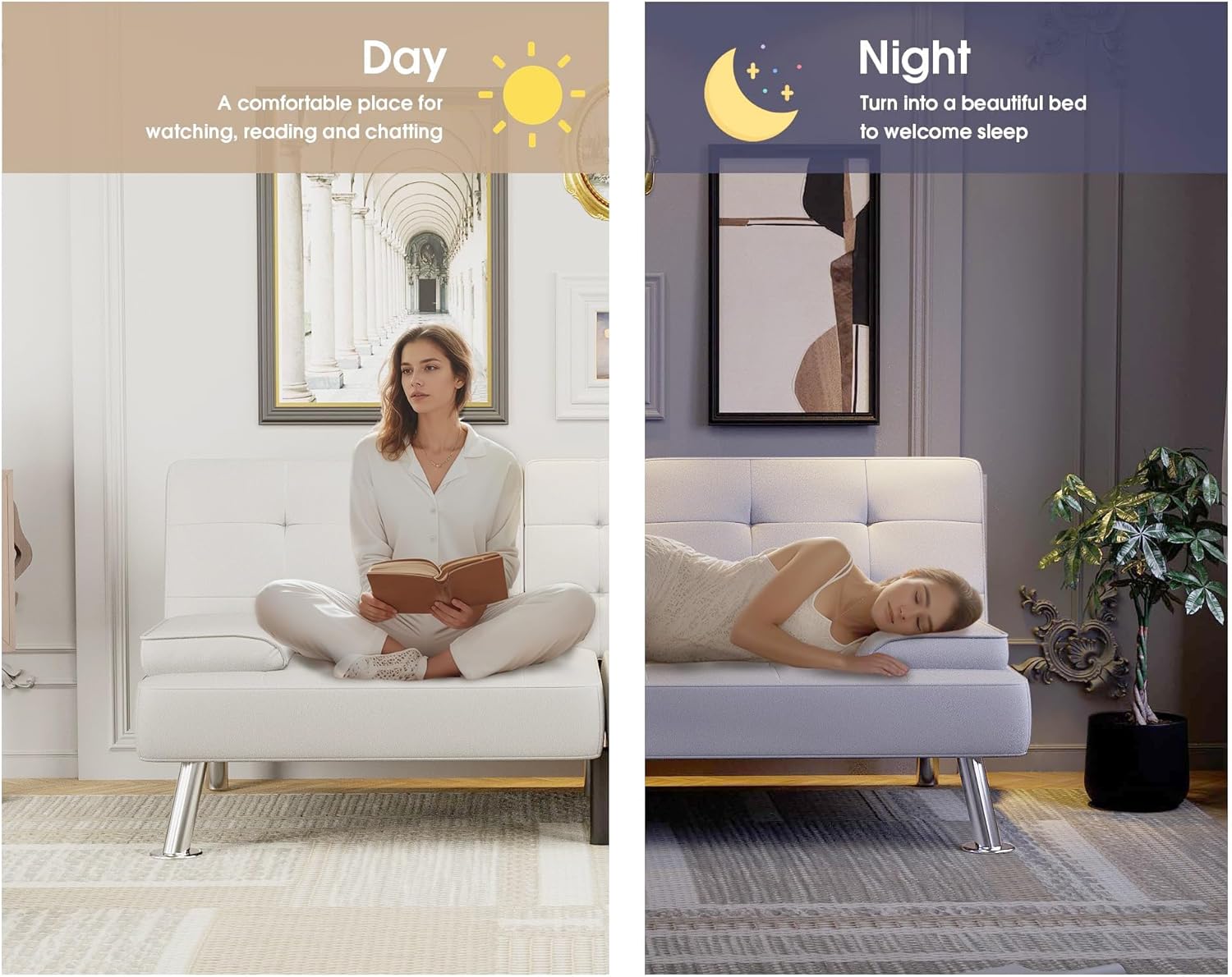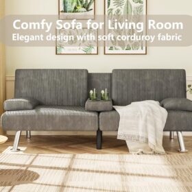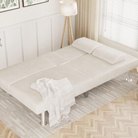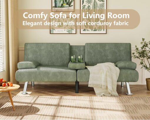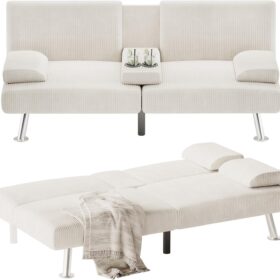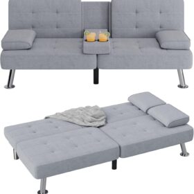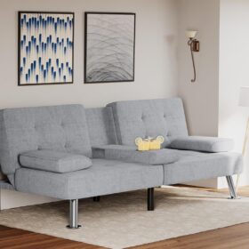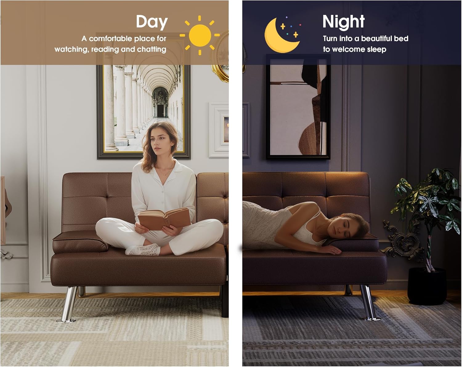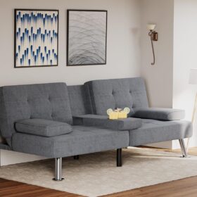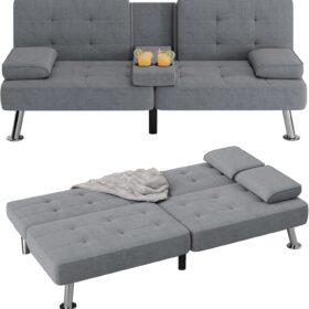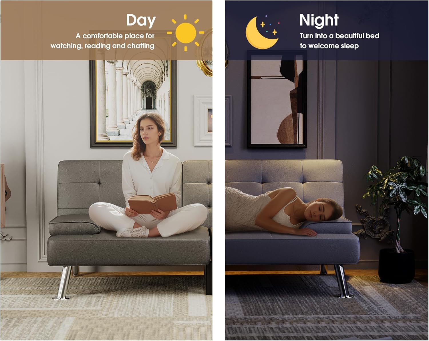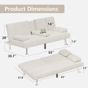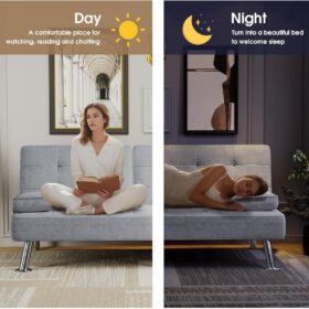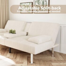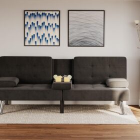 Flamaker Futon Sofa Bed Modern Folding Futon Set Convertible Recliner Lounge for Living Room with 2 Cup Holders, Removable Armrests (PU Leather, Black)